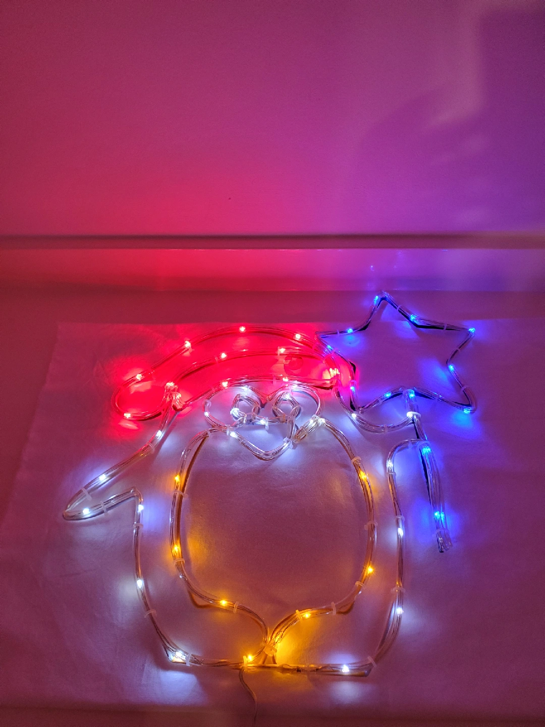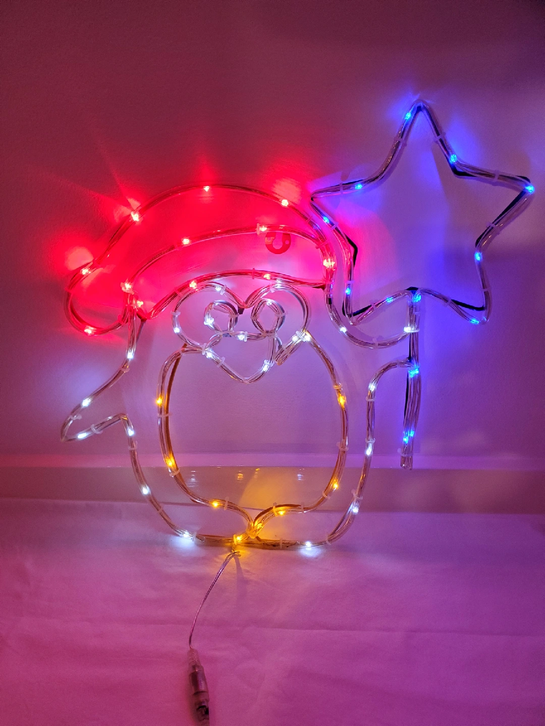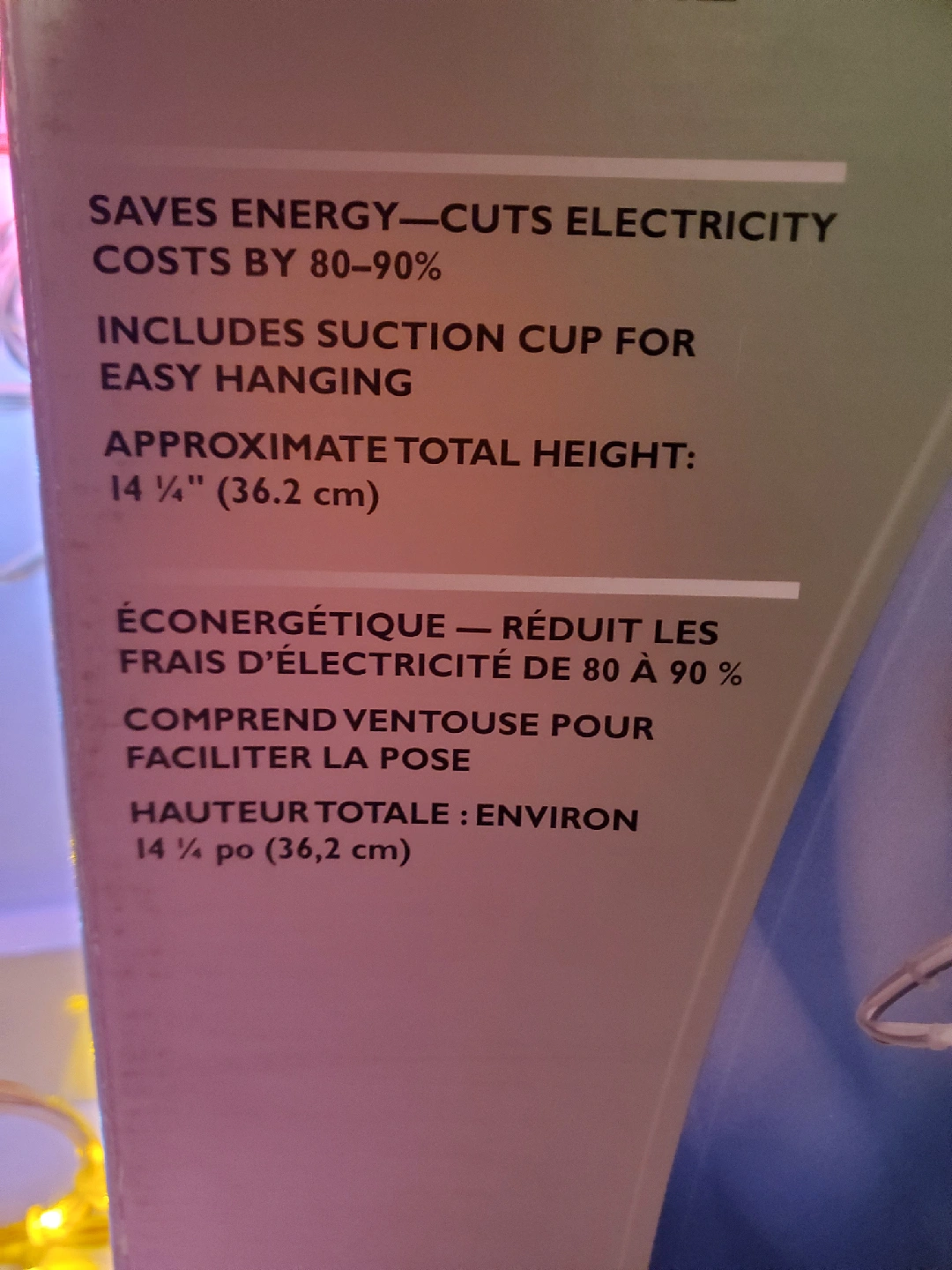 Add a festive touch to your home with this NOMA indoor/outdoor decorative window silhouette! It features a cute design with bright, energy-saving lights. Has a clip for hanging. suction cup is missing.The approximate total height is 14¼" (36.2 cm)