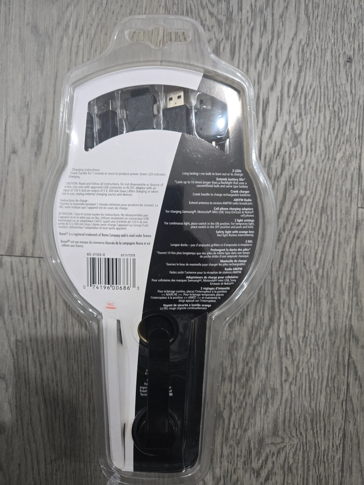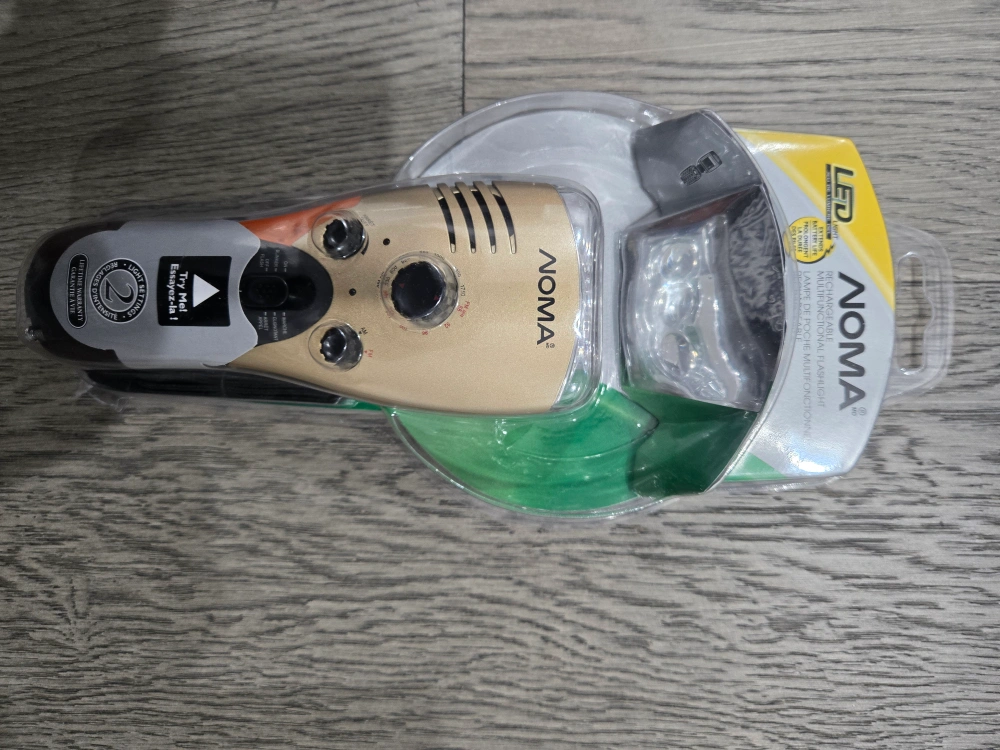 Selling a Noma Multifunctional Flashlight, brand new in its original packaging! This LED flashlight is designed for various uses and includes multiple features. It also has an extendable antenna for AM/FM radio. Discontinued item but never been used. Unopened package.