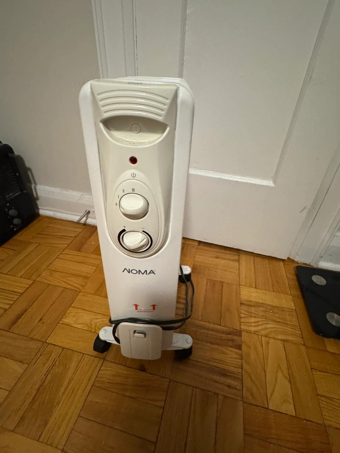 Selling a NOMA oil-filled heater in great condition! It's a handy way to keep warm during the colder months. It's white and ready to use