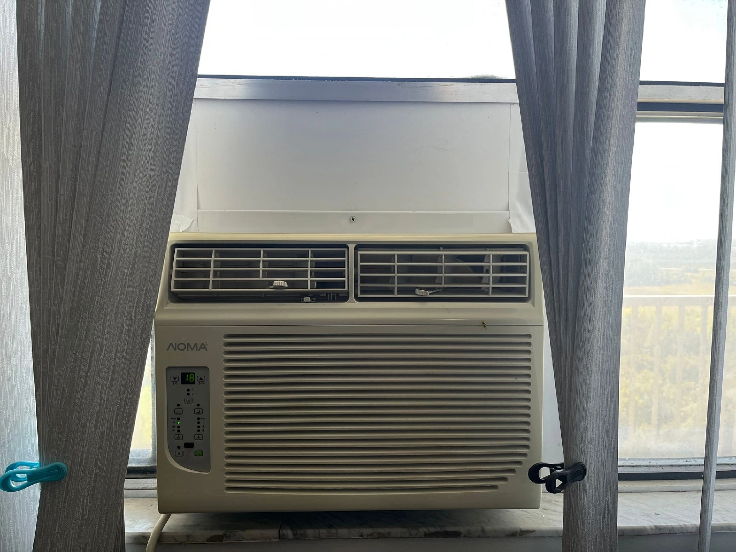 Works perfect. No problem at all. It comes with ac attachments on the wall/window plus an AC cover to store away in the winter if needed Vents are adjustable. Eco mode available to save electricity. *Moving out sale*