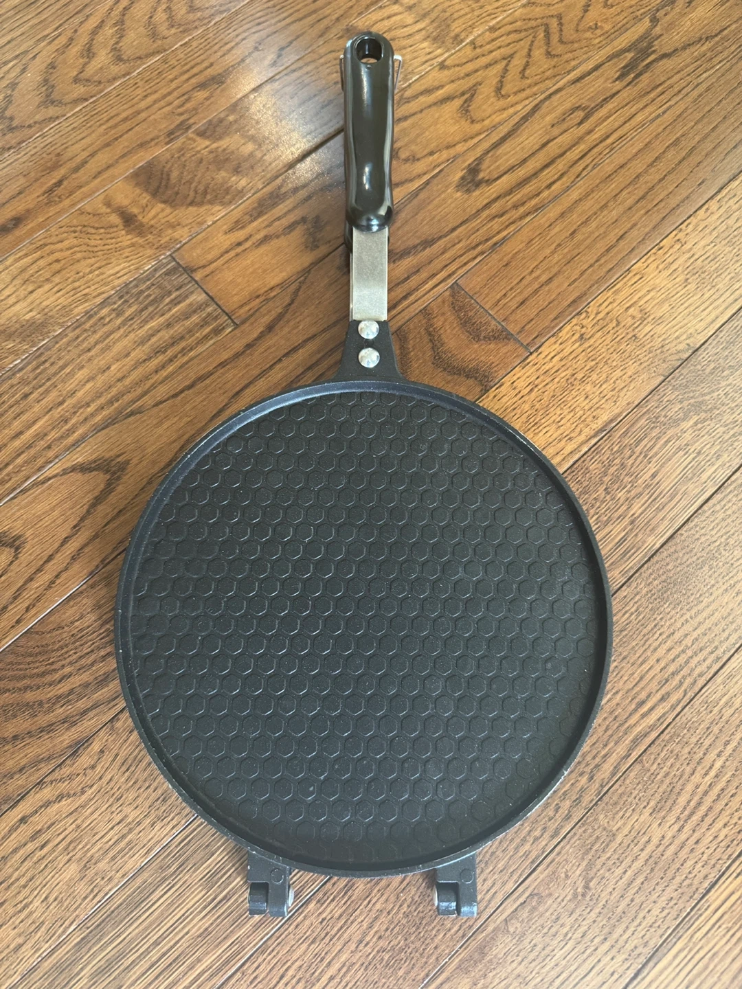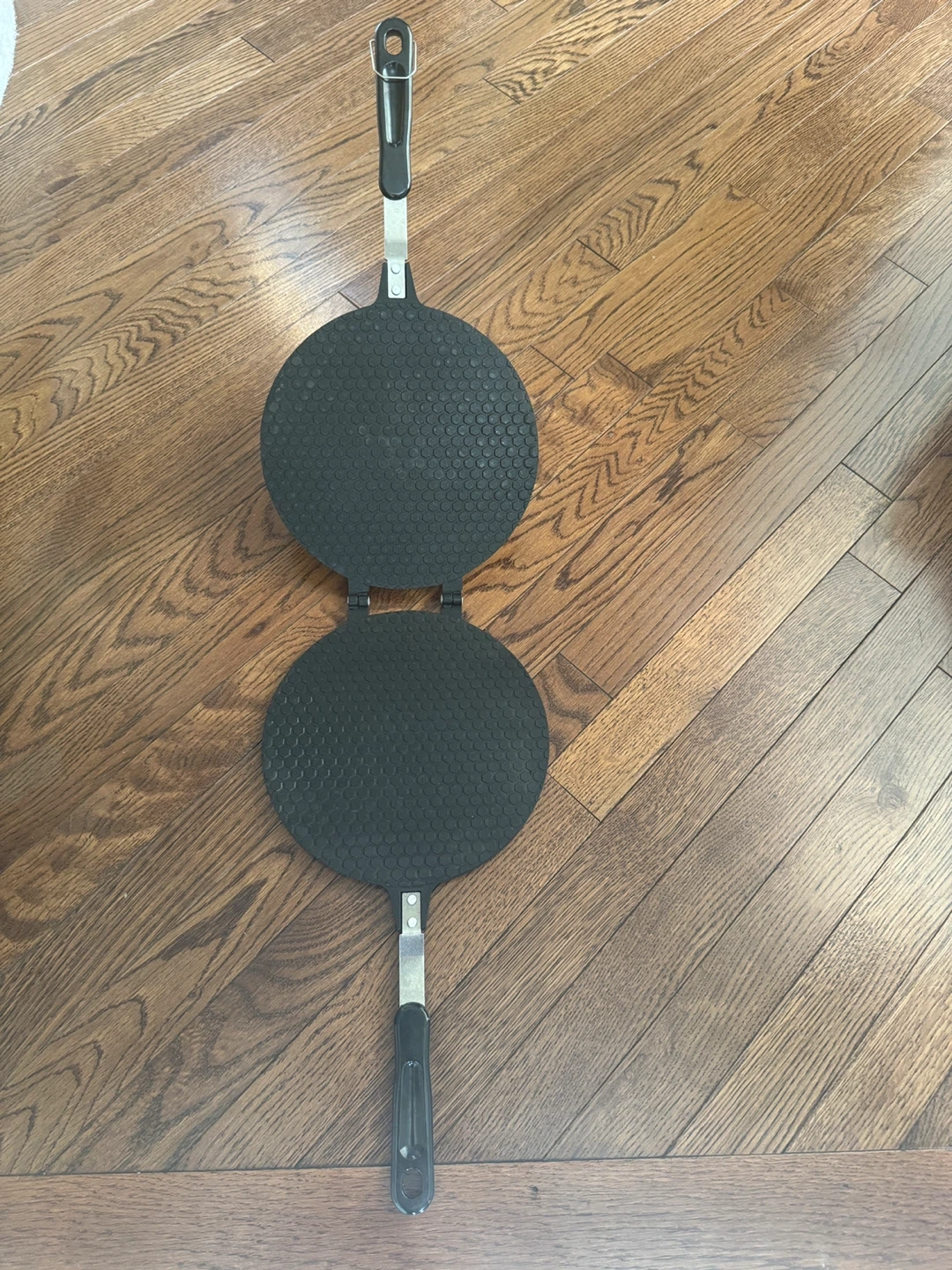 Selling an ice cream cone maker in like-new condition! It's made of non-stick aluminum alloy material, making it durable and easy to clean. It also makes the food more delicious and perfect in shape. It weighs 780g and the dimensions are approximately 22cm/8.66inch diameter and 20cm/7.87inch handle length