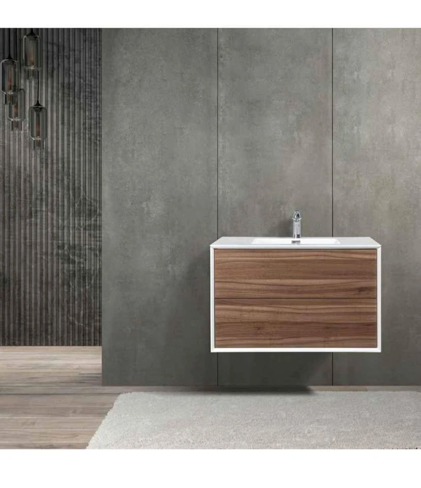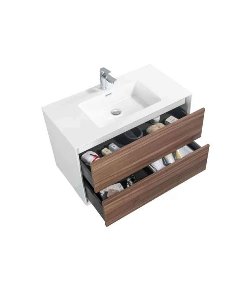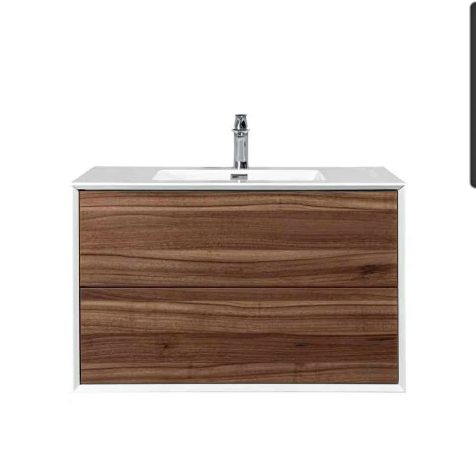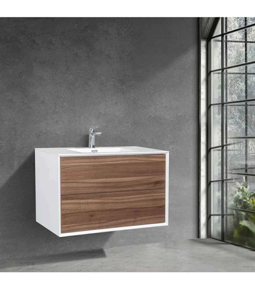 Nordic Canada Delfina Vanity with Acrylic Top, 36-inch Walnut BRAND NEW IN BOX $480 MODEL NUMBER VA9936FL Modern style and elegance come together for this well-crafted design. It's sleek and fashionable design features an all wood construction cabinet with Natural Walnut wood veneer panels allowing for the perfect balance between colour and design. Push to open, soft-closing doors and or drawers designed to accomodate your accesories and toileteries. Its maintenance free countertop with integrated sink and pre-drilled for single-hole faucet mount is made from a high-end Acrylic material that is very easy to clean and requires little maintenance. Its warmth and character provides a stunning look to complete any bathroom - whether you're starting something brand new, or just want to spruce up an older design. Include: Vanity and countertop with integrated sink Pre-assembled wall mount bathroom vanity. Plywood with Natural Walnut wood veneer construction. Push to open soft-Closing mechanism. Maintenance-free high end Acrylic countertop with integrated sink. Pre-drilled for single-hole faucet mount (faucet not included) Smooth, easy to clean surface.