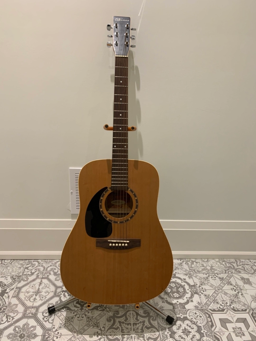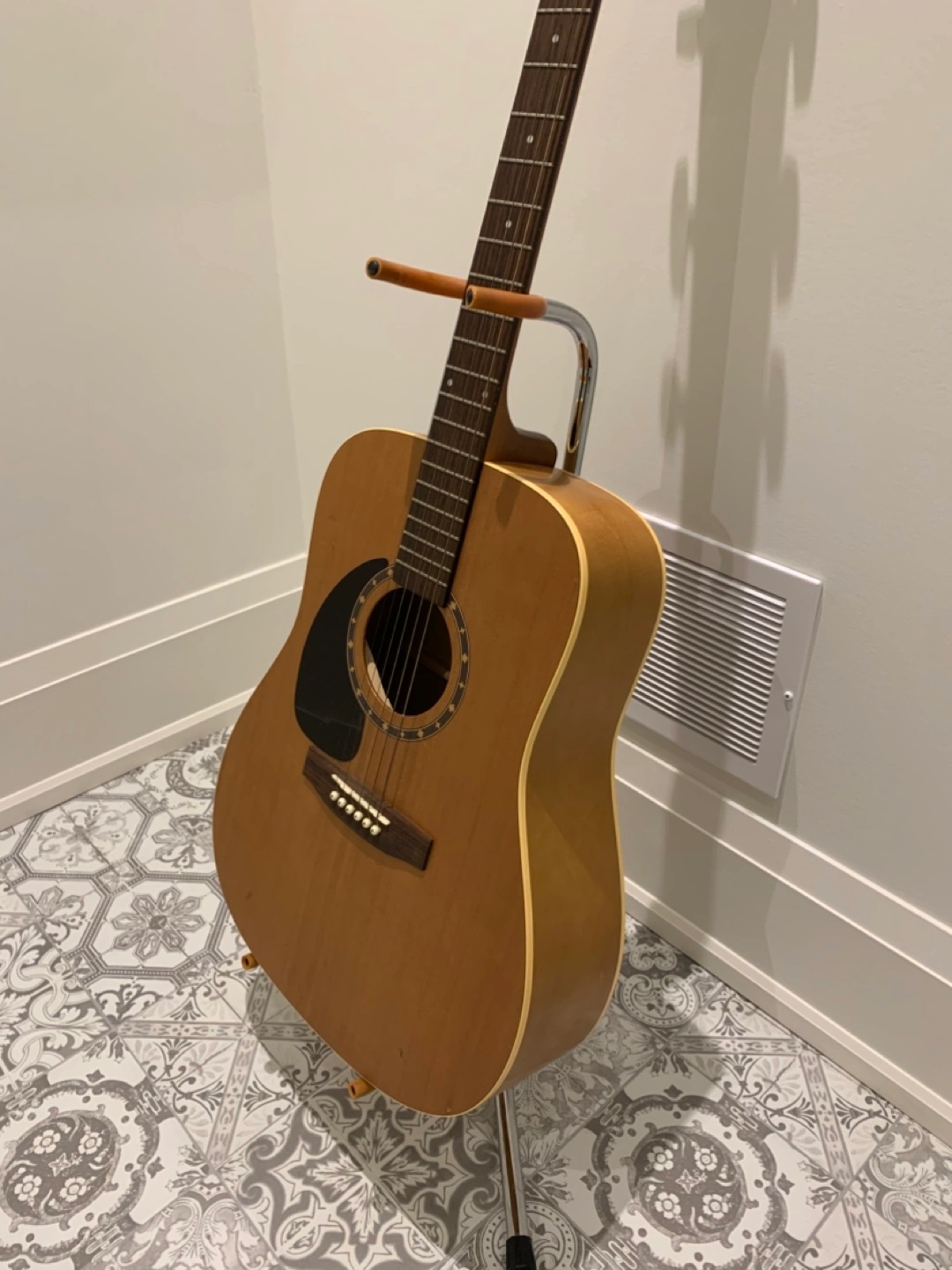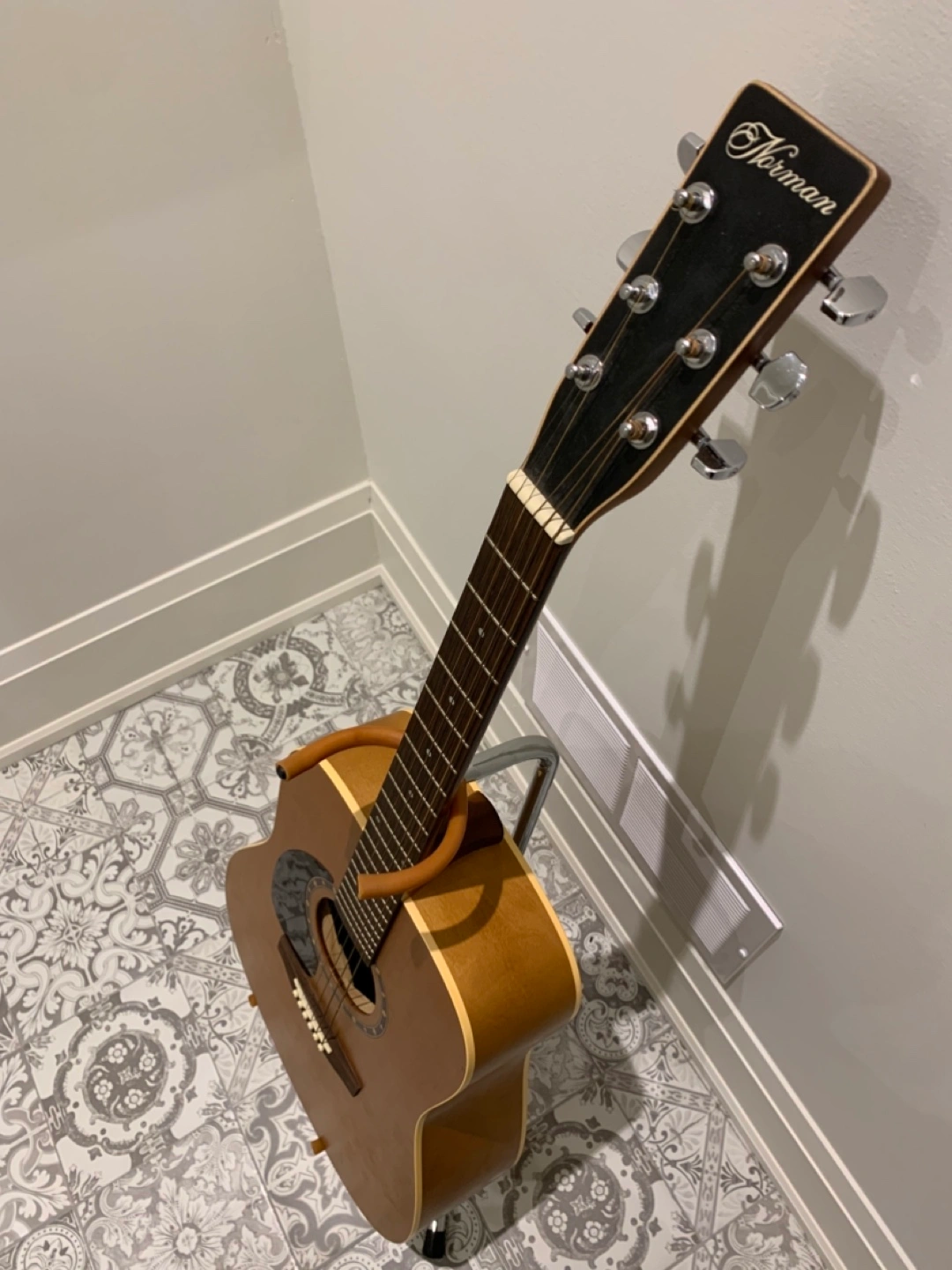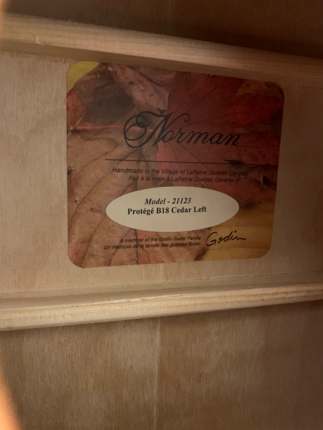 For sale is a Norman 21123 Protégé B18 Cedar, a beautifully crafted Canadian dreadnought acoustic guitar. Key Features: -Solid cedar top for warm, rich tones -Wild cherry back & sides for clarity and resonance -Silver-leaf maple neck, comfortably shaped with a dual-action truss rod -Rosewood fingerboard & bridge providing smooth playability -Graph tech TUSQ nut & saddle for improved tone and tuning stability -High-ratio 14:1 tuning machines for precise tuning -Satin semi-matte finish in a natural colour -No electronics, purely acoustic design -Scale length: 632 mm (~24.9″) — ideal for both strumming and fingerstyle  Condition: -Like new -Minimal damage (see photos) -Plays perfectly Bonus: Includes a guitar stand, perfect for display and safe storage. Norman guitars, now part of the Godin family, are renowned for their exceptional craftsmanship and tone at an accessible price point. As one musician put it, they offer “great value for money, often sounding better than instruments in the USD 1k–3k range.”  Asking Price: $450 (open to reasonable offers)