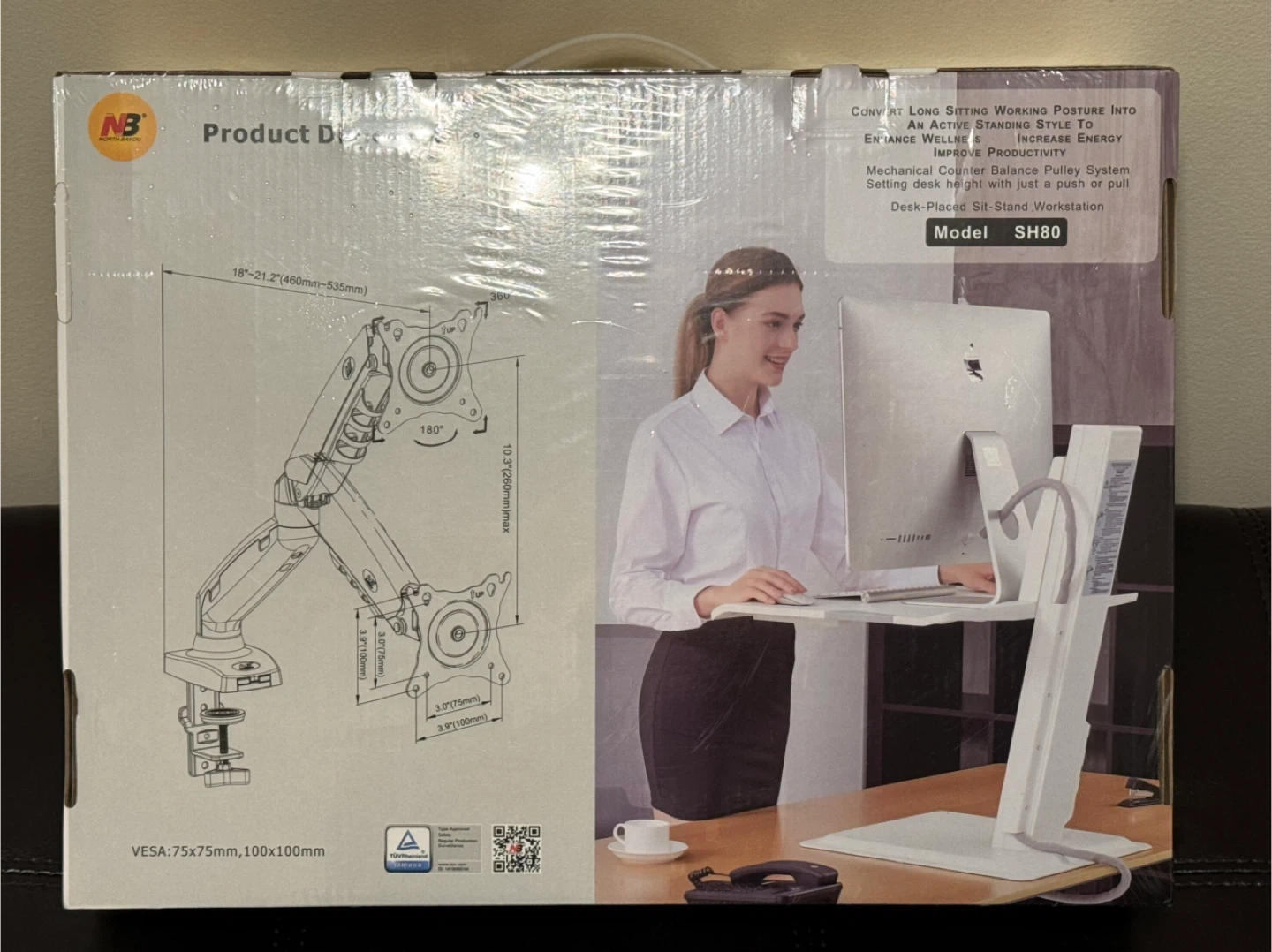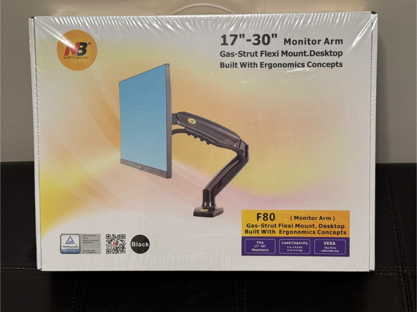 Selling a brand new North Bayou F80 monitor arm. It's still in its original packaging and has never been used! This gas-strut flexi mount is perfect for desks and built with ergonomics in mind. It fits 17"-30" monitors and has a load capacity of 4.4-19.8 lbs (2.0-9.0 kg). It also supports VESA 75x75 to 100x100 mm. The box is included!