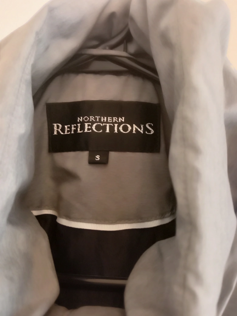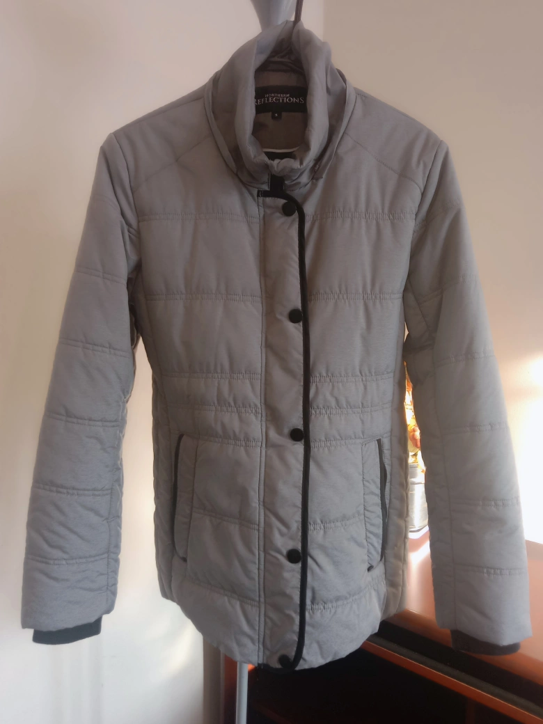 Lightweight grey puffer jacket. Snap button and zipped closure. Size small. Good condition.