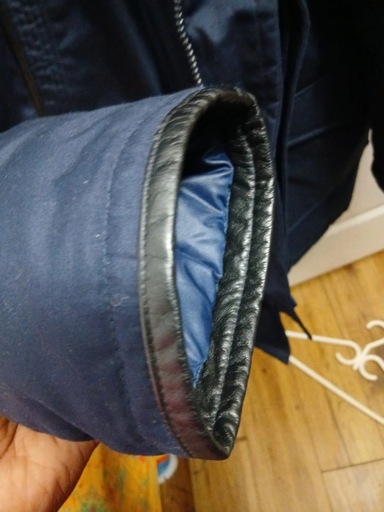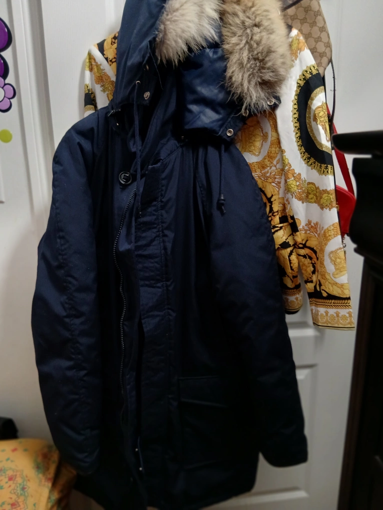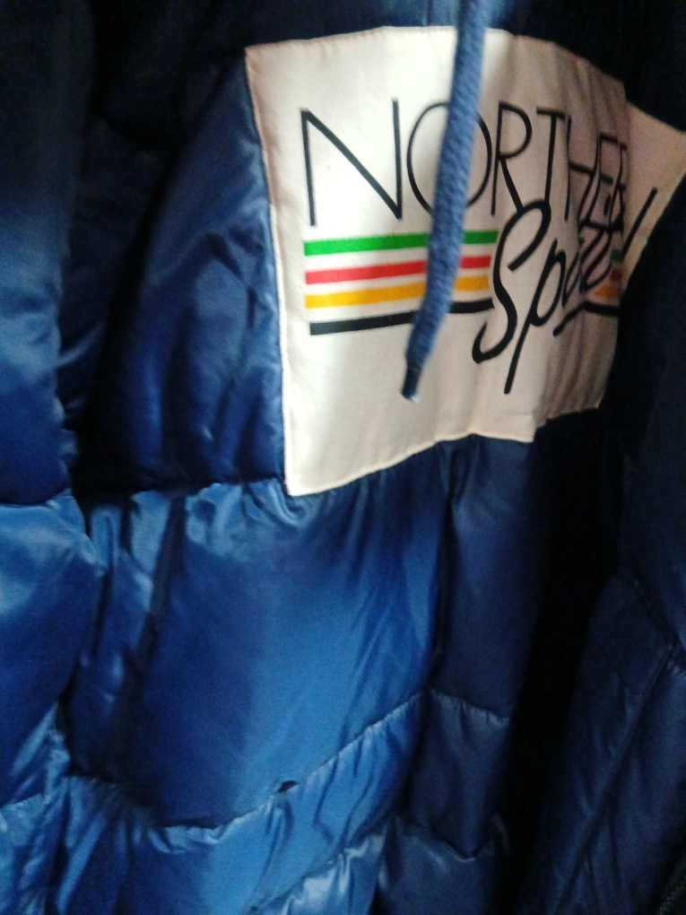 Here's a cozy Northern Spy winter parka in a nice blue colour! It's perfect for keeping warm during those cold Canadian winters. The parka has a fur-trimmed hood for extra warmth and protection from the elements. It's in great condition and ready for a new home!