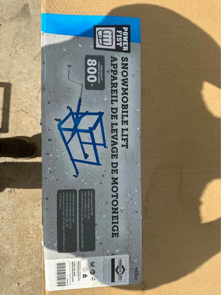 Only 2 left New in the box snowmobile/motorcycle/ATV lift $249 at princess auto https://www.princessauto.com/en/searchresults?Ntt=snowmobile%20lift $150 Calgary and Invermere BC