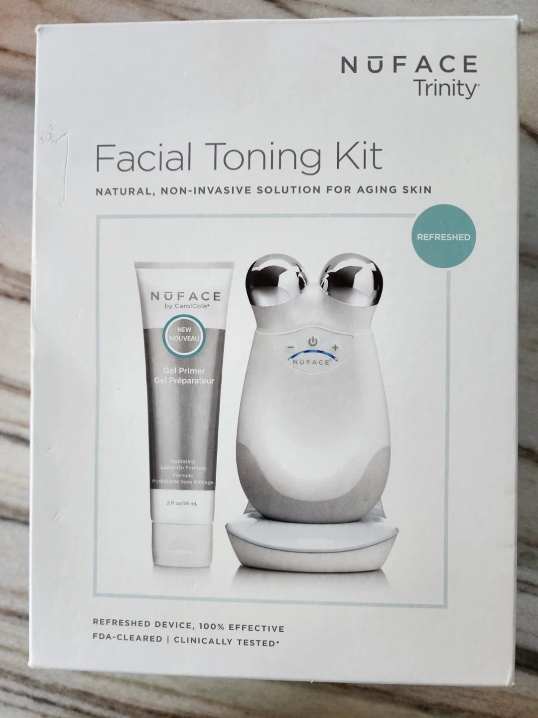 Selling a NuFACE Trinity Facial Toning Kit in excellent condition! This kit offers a natural, non-invasive solution for aging skin. Included: - NuFACE Trinity device - Gel Primer - Charger It's designed to help improve facial contour, skin tone, and reduce the appearance of wrinkles. A great addition to your skincare routine!