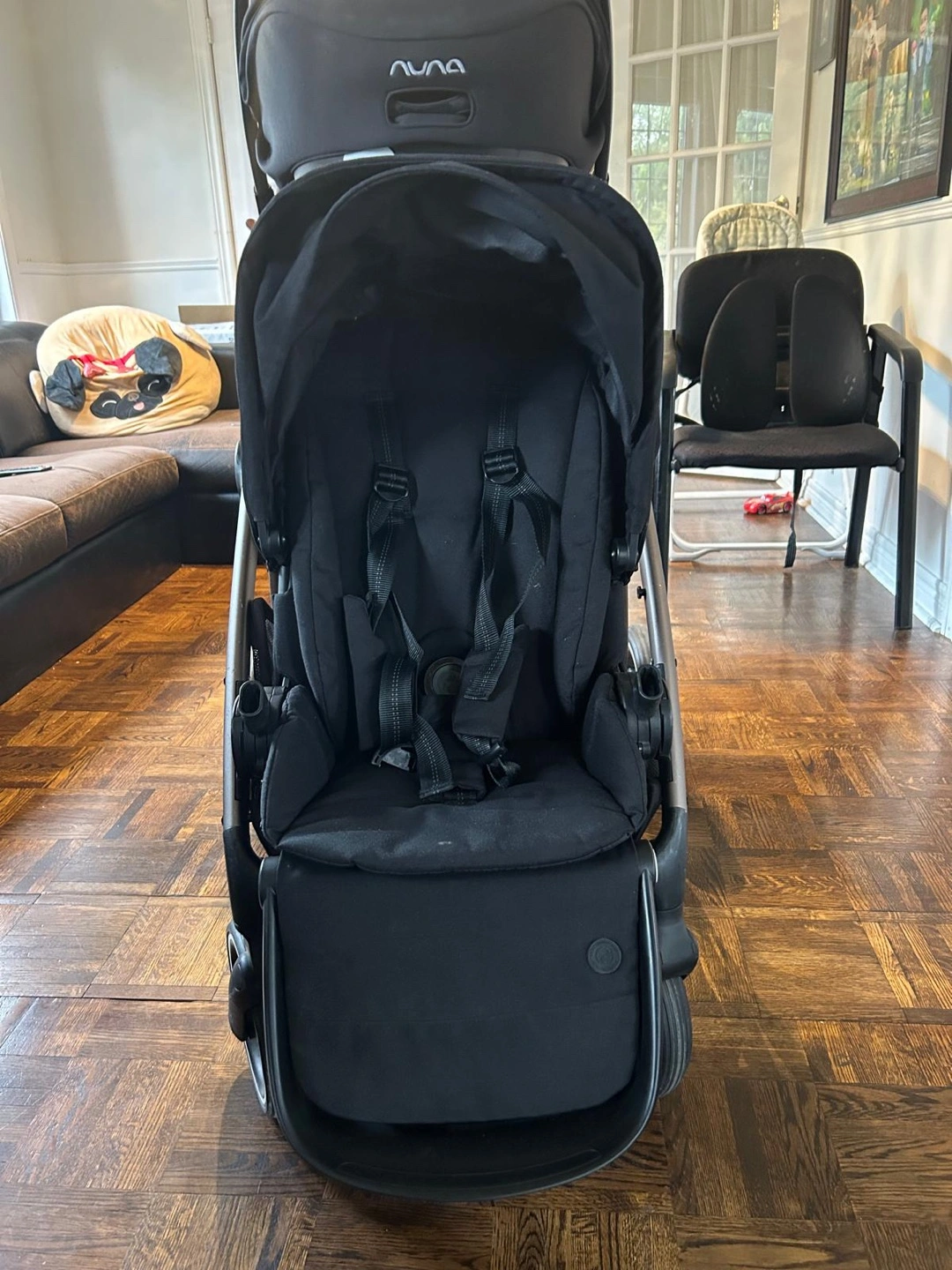 A sleek stroller with a comfortable seat and a sunshade. This is double stroller. Light wait and good quality. It has a large storage basket underneath. This stroller is perfect for leisurely walks with your little one. Its comes with , rain cover & small basket.