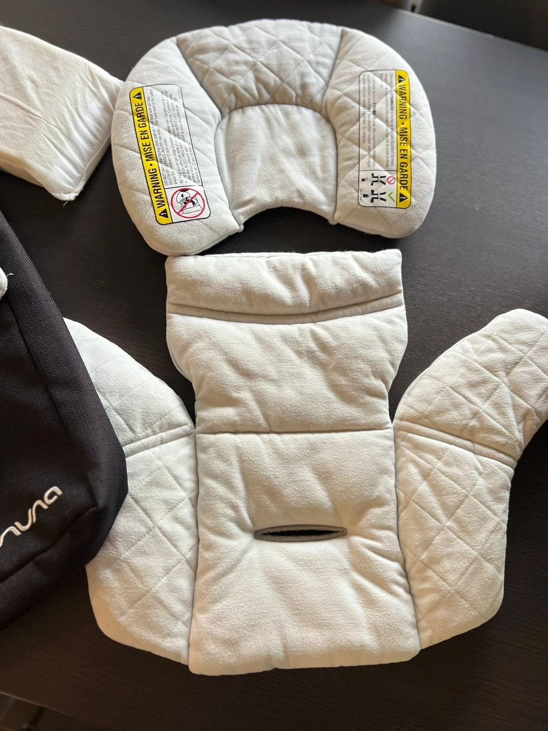 Selling a set of Nuna infant car seat inserts. These are in great condition and will provide extra support and comfort for your little one. Includes the head support, body support, and harness covers. Perfect for keeping your baby snug and secure in their car seat