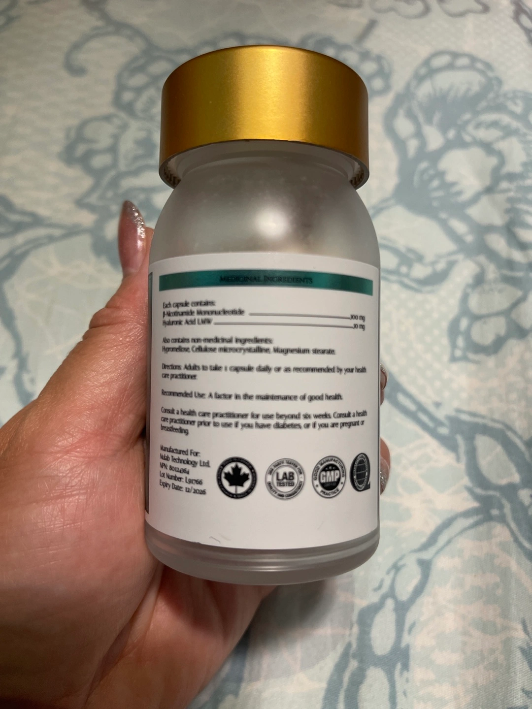I'm selling a bottle of NUNMN NMN 21000 supplement. It's a factor in the maintenance of good health and youthful looking skin Each capsule contains β-nicotinamide 300mg niacinamide acid 50mg Expiry Date: December 2026 Made in Vancouver,BC Canada 🇨🇦 (This is not a new bottle, but it contains 40 capsules)