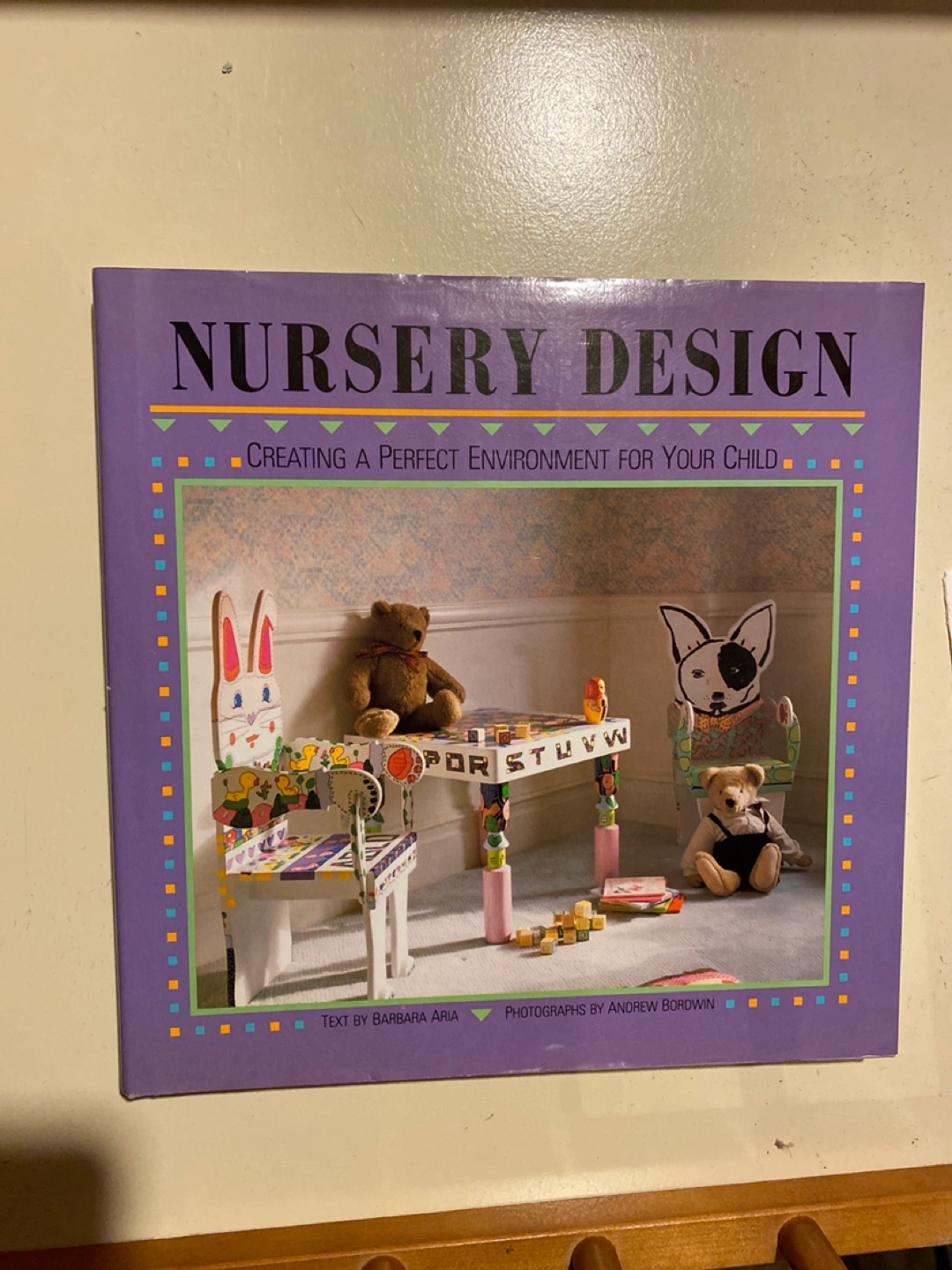 Purple cover. Features the title, Nursery Design. Includes photographs. A great book for helping parents create beautiful nurseries.