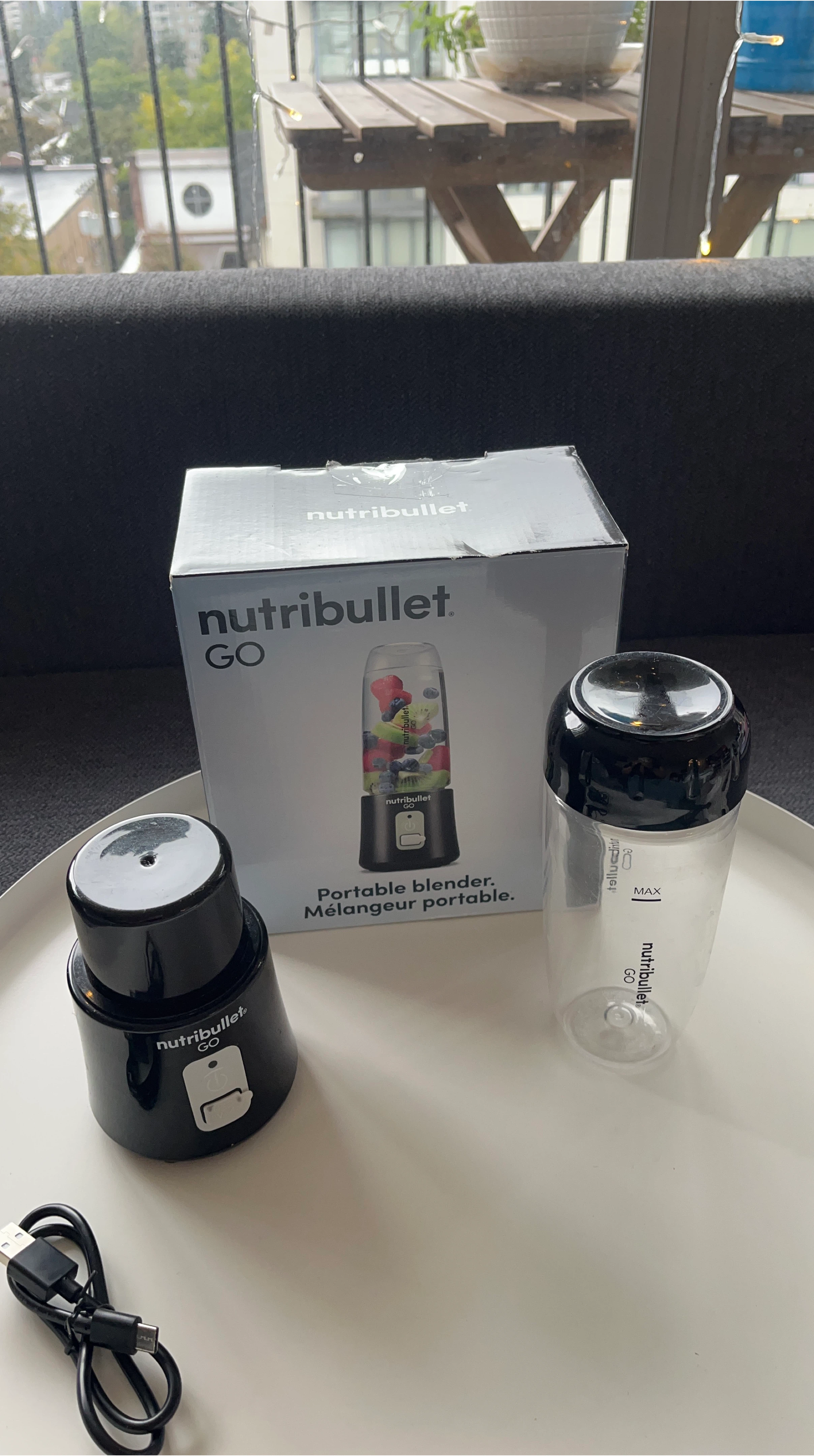 Selling a Nutribullet GO portable blender that's in excellent condition! It comes with the original box and a USB charging cable. Perfect for smoothies on the go!