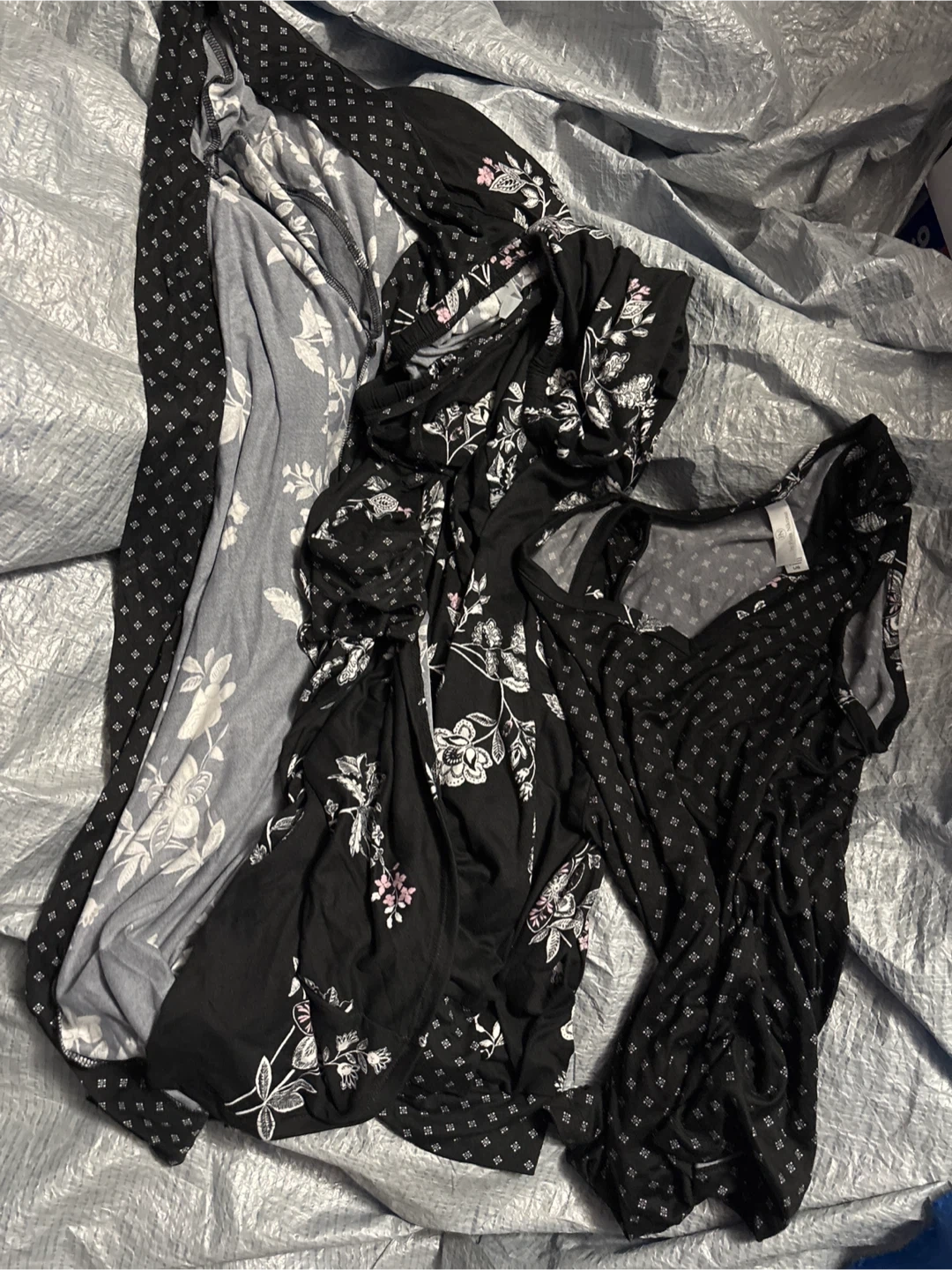 Selling a Flora Nikrooz dress in size L/G. It features a lovely floral pattern on a soft, comfortable material. Includes tank, pant and robe. Perfect for a casual day out or a relaxed evening at home