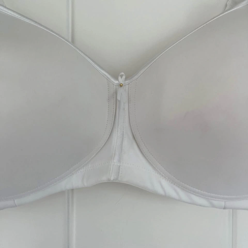 Vanity Fair Body Caress Convertible Contour Soft Bra in White. Combining comfort, support, and smoothing all in one and all while wireless! Convertible to criss-cross design as well as regular style. This bra is new with tags, there are a few marks on the cup as shown, I have not tried to wash it. Women's Size 38DD 80% Polyester, 20% Spandex - Flattering neckline - Adjustable straps - Seamless design for ultimate comfort - Back hook closure with 4 levels of adjustment Porch pick up west Maple Ridge.