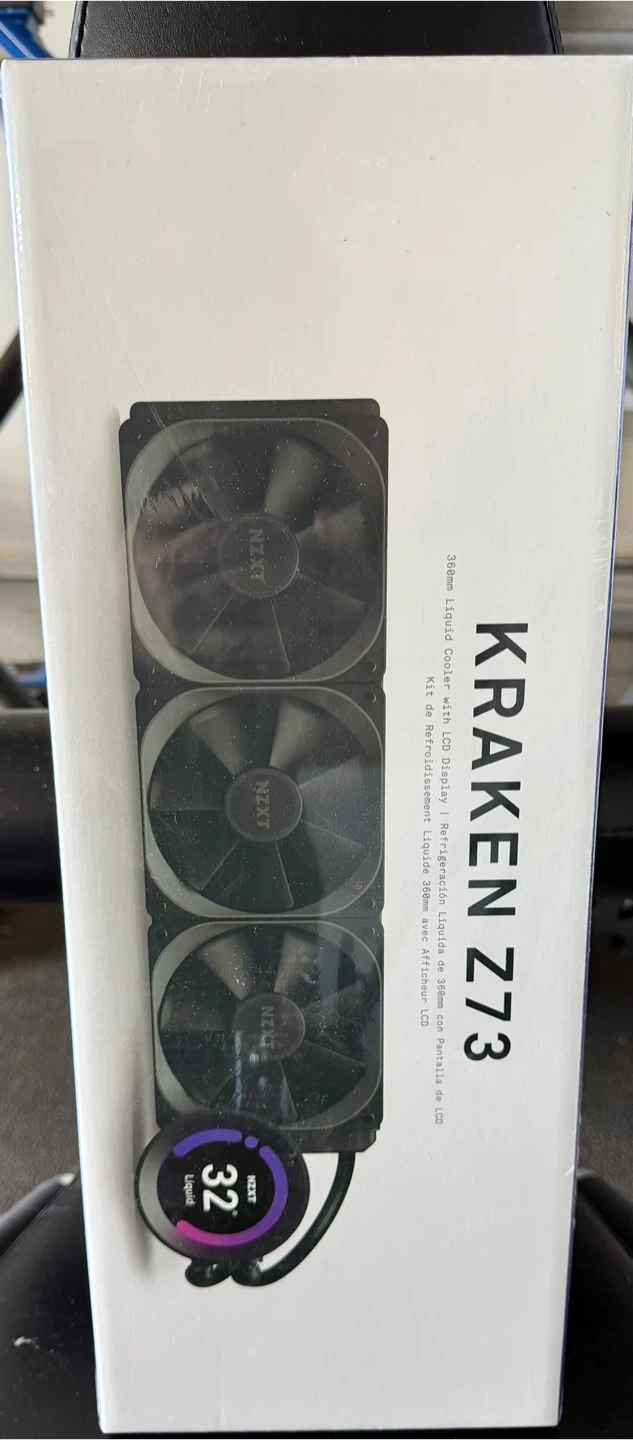 Selling a brand new unopened NZXT Kraken Z73 360mm liquid cooler! It features a customizable LCD display to personalize your system's aesthetics. The cooler is compatible with NZXT RGB fans for seamless integration and enhanced performance. It also provides robust and versatile cooling for your CPU. $150 obo.