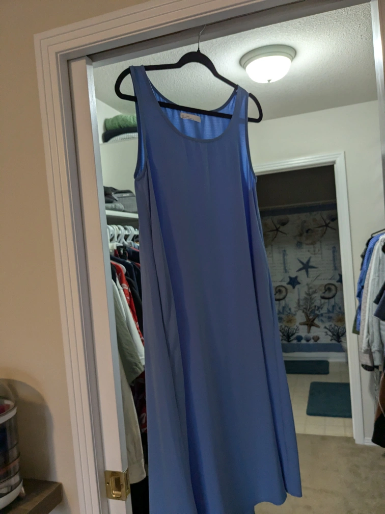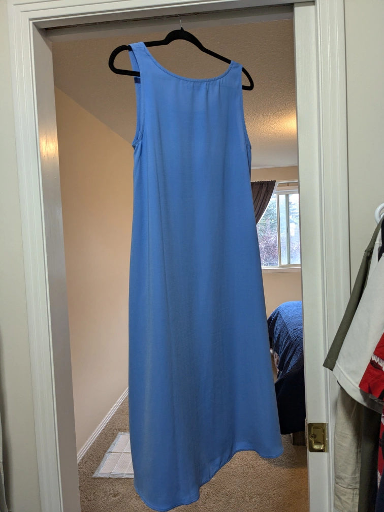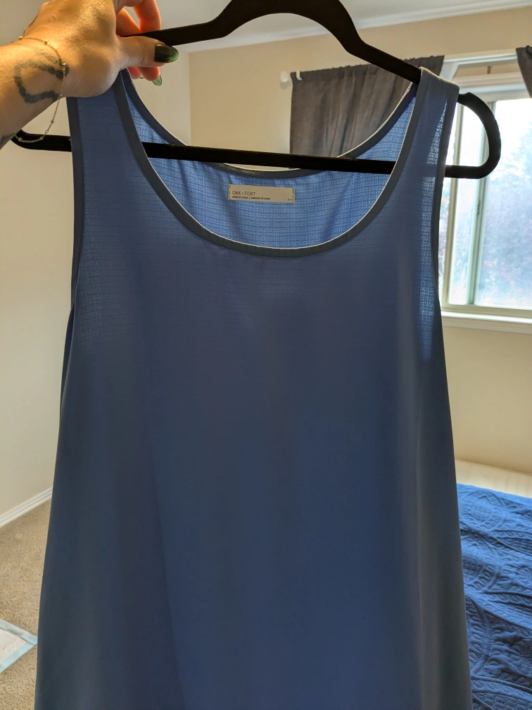 A lovely blue dress from Oak + Fort in size small. It's in great condition and ready for a new home!