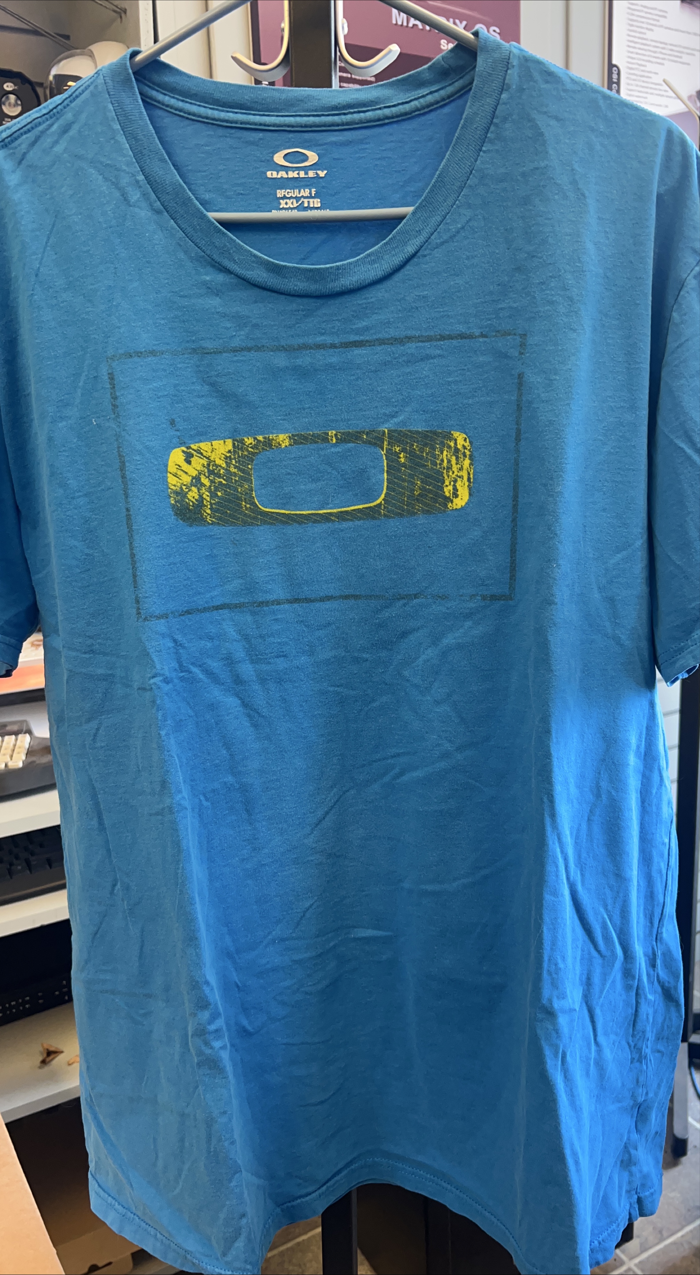 Selling an Oakley blue T-shirt in size XXL. It's in used condition.