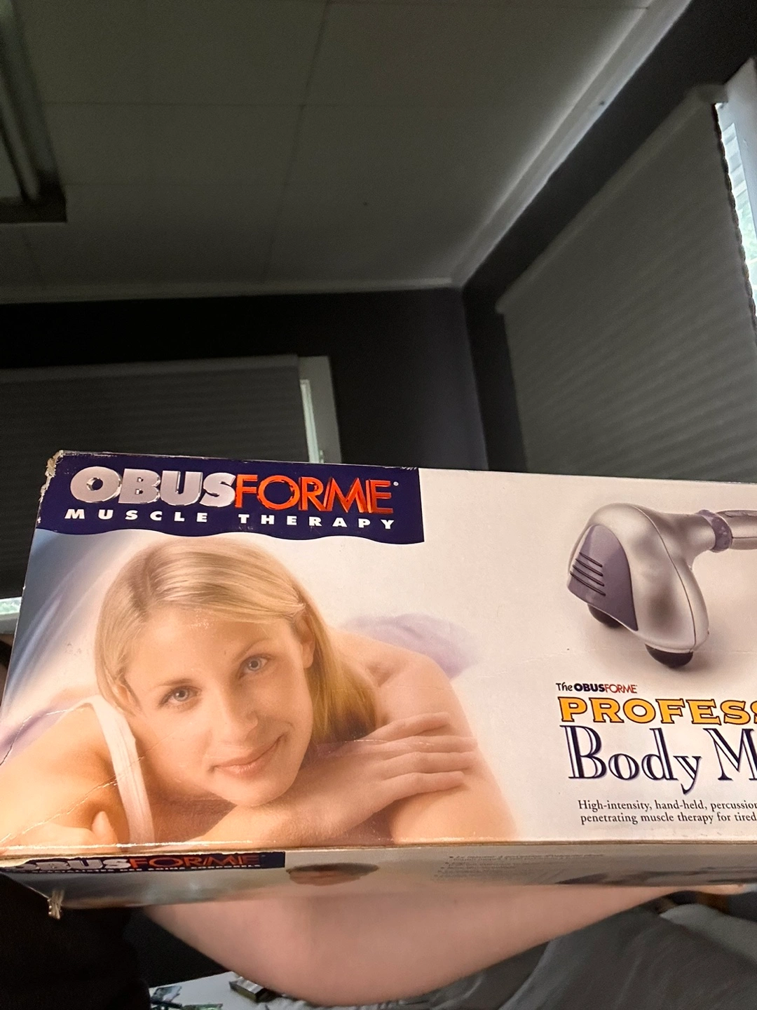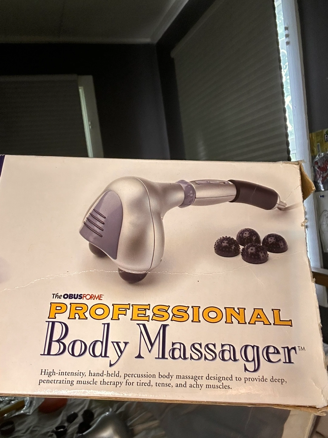 Selling an ObusForme Professional Body Massager. It's a high-intensity, hand-held, percussion body massager designed to provide deep, penetrating muscle therapy for tired, tense, and achy muscles. Got rid of my knots in a minute.