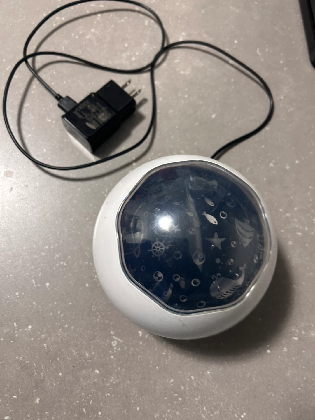 Selling a gently used ocean star night light projector! It projects stars and ocean creatures onto the ceiling and walls, creating a calming atmosphere for kids. Comes with a charger
