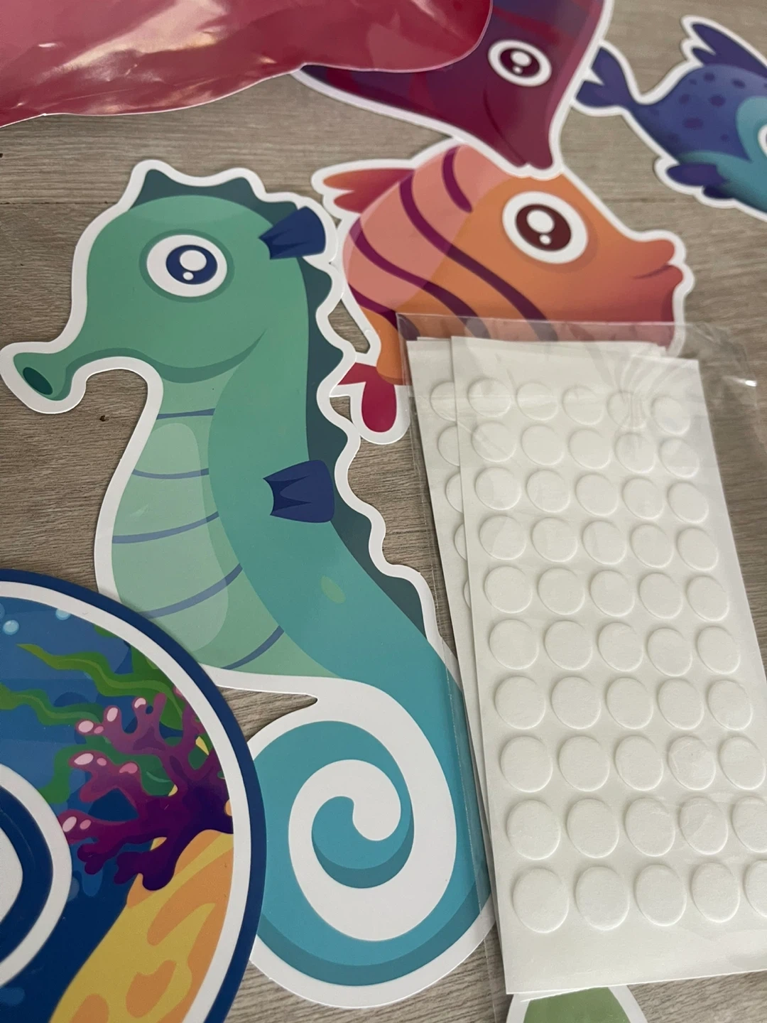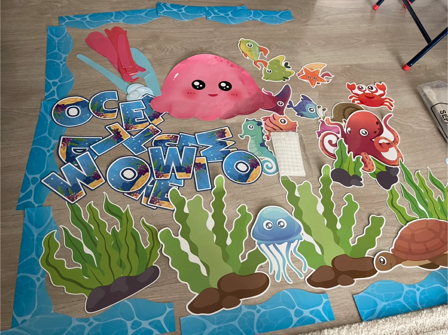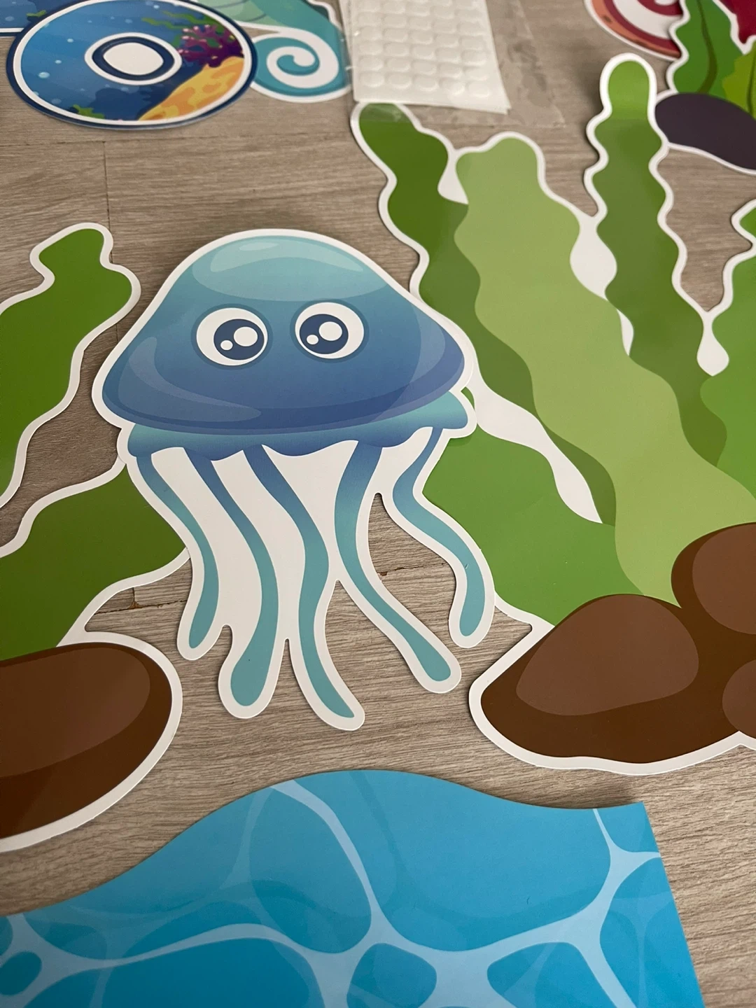 Cute ocean themed bulletin board cutouts, perfect for decorating a classroom or kids' room! Includes various sea creatures and plants to create a fun underwater scene