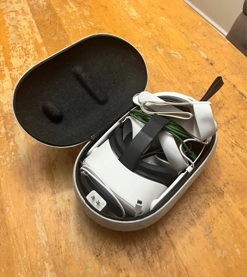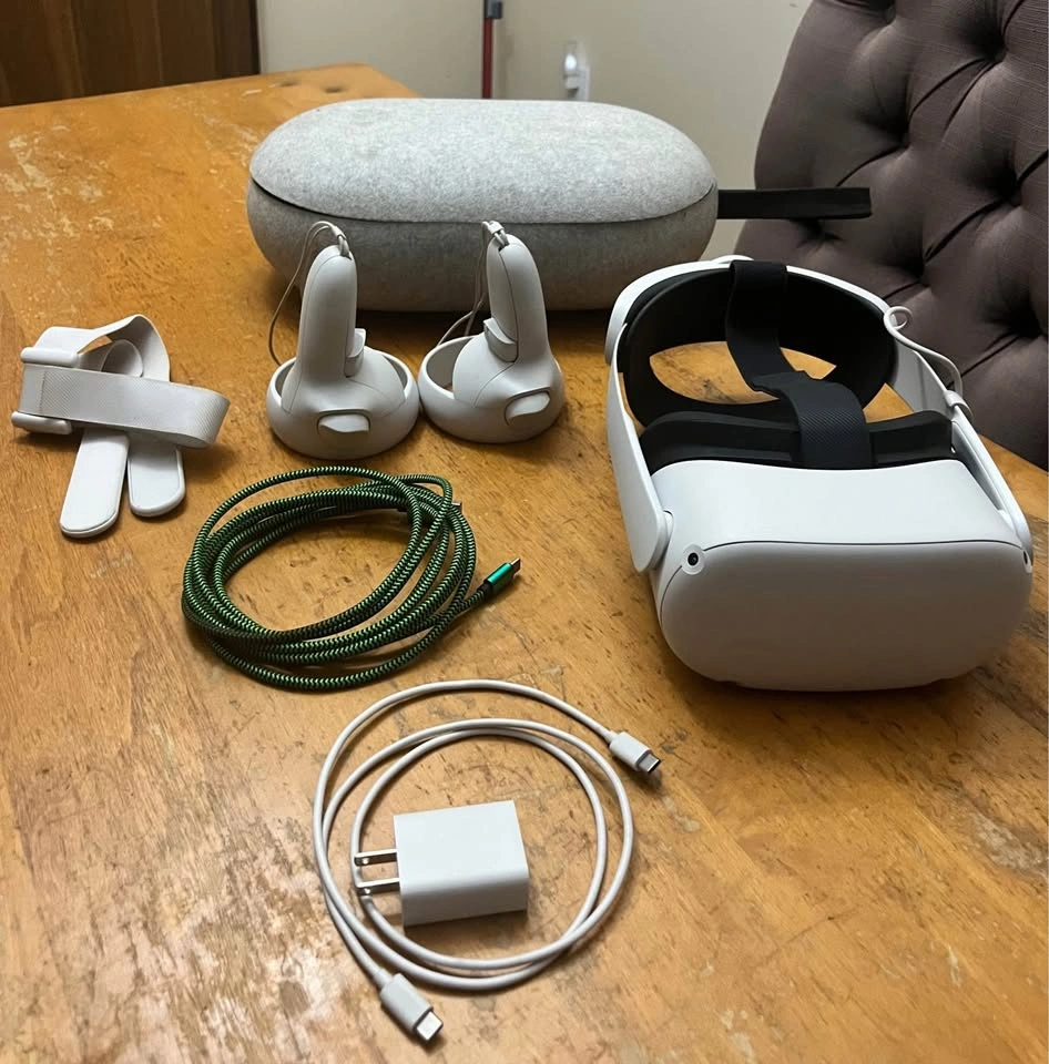 I am selling the Oculus 2 with external battery elite headset and protective case as I don’t have the space to use it anymore. The device works great still and with the extra battery you can get longer play times out of it. I installed a silicone face protector so the foam pad has never had sweat on it. Also original charging block and cable and a 8 foot charging cable if need to charge for extended play times.