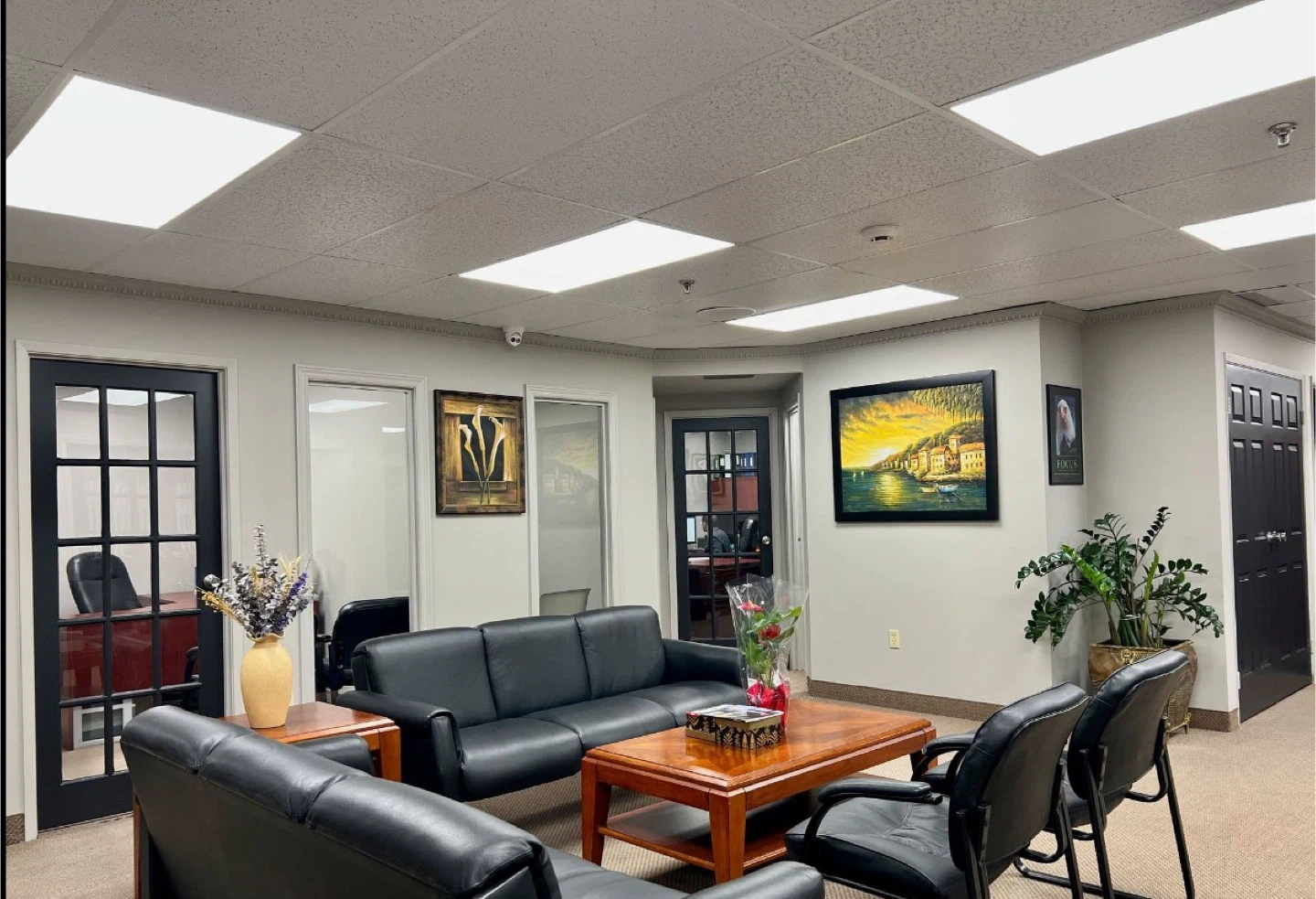 Fully furnished office available for lease with waiting area, reception, conference room, ample parking. All utilities included. Best place for professionals like accountants, insurance, mortgage , para legal, civil engineers. Rent starts from $750