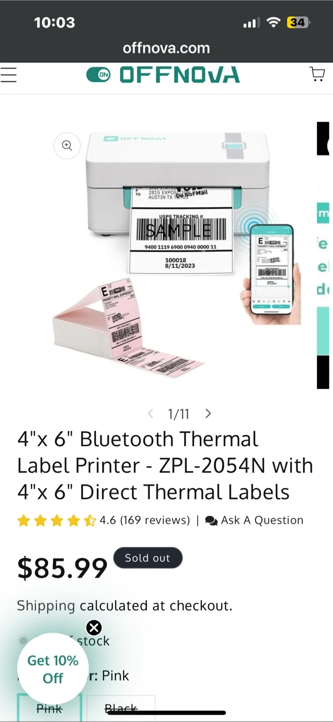 Selling an Offnova ZPL-2054N Bluetooth Thermal Label Printer. It prints 4" x 6" direct thermal labels. Originally bought for $85.99.