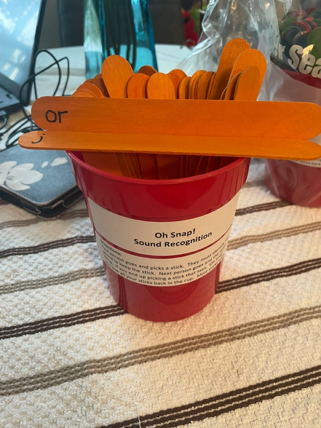 A fun sound recognition game. Comes with orange sticks and a red container to hold them. Playing this game can be a great way to relax and have fun at the same time well learning your sounds. Instructions for game on cup. First come first serve. Pick up in Jane and Lawrence area in North York. Bring exact cash as no change available. Message when your on your way to receive address. If item is showing it’s available.