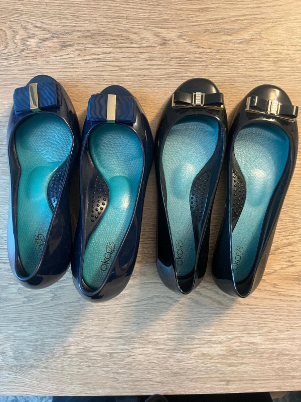 Cute Oka B. ballet flats available in navy and black! These are perfect for adding a touch of style to your everyday look. They are in great condition and ready for a new home black are flats and navy are peep toe wedges. $25 each or BOTH for $40