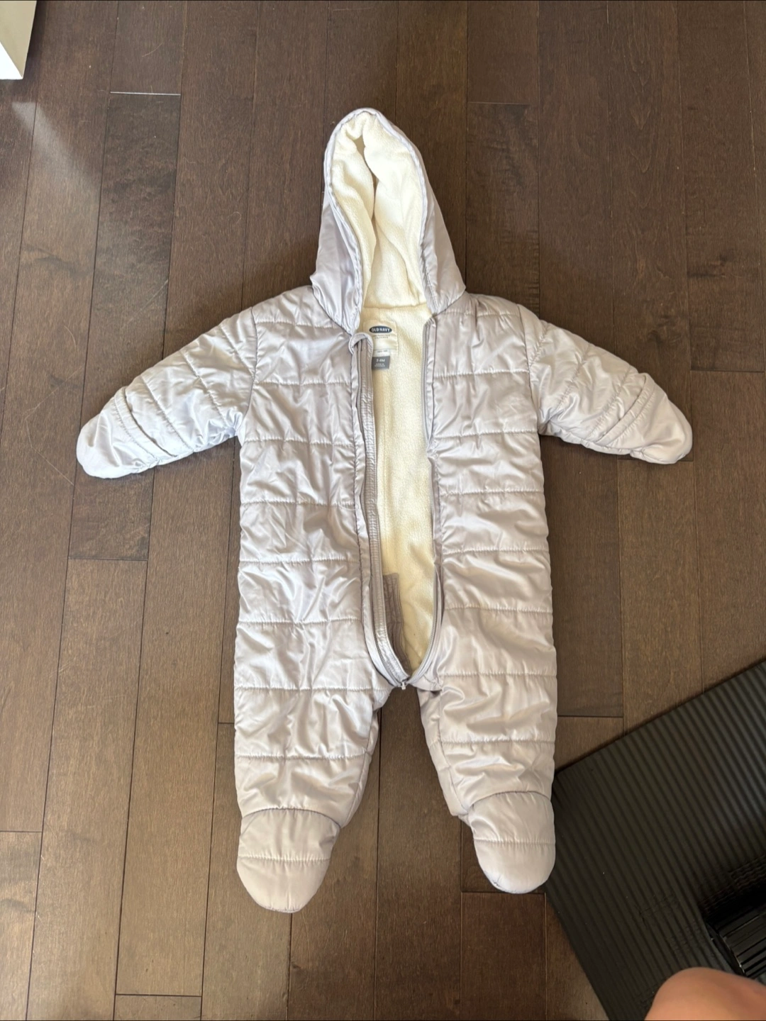 Cozy Old Navy baby snowsuit, perfect for keeping your little one warm this winter! It's a size 3-6 months and features a soft, plush lining to keep baby snug and warm during those chilly days out and about