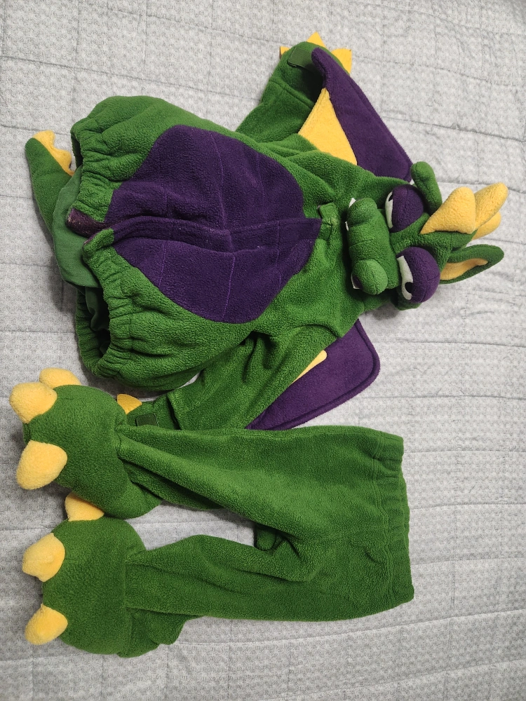 Super cute dragon costume from Old Navy! It's green, purple, and yellow and sized for 12-24 months. Perfect for dress-up or Halloween!