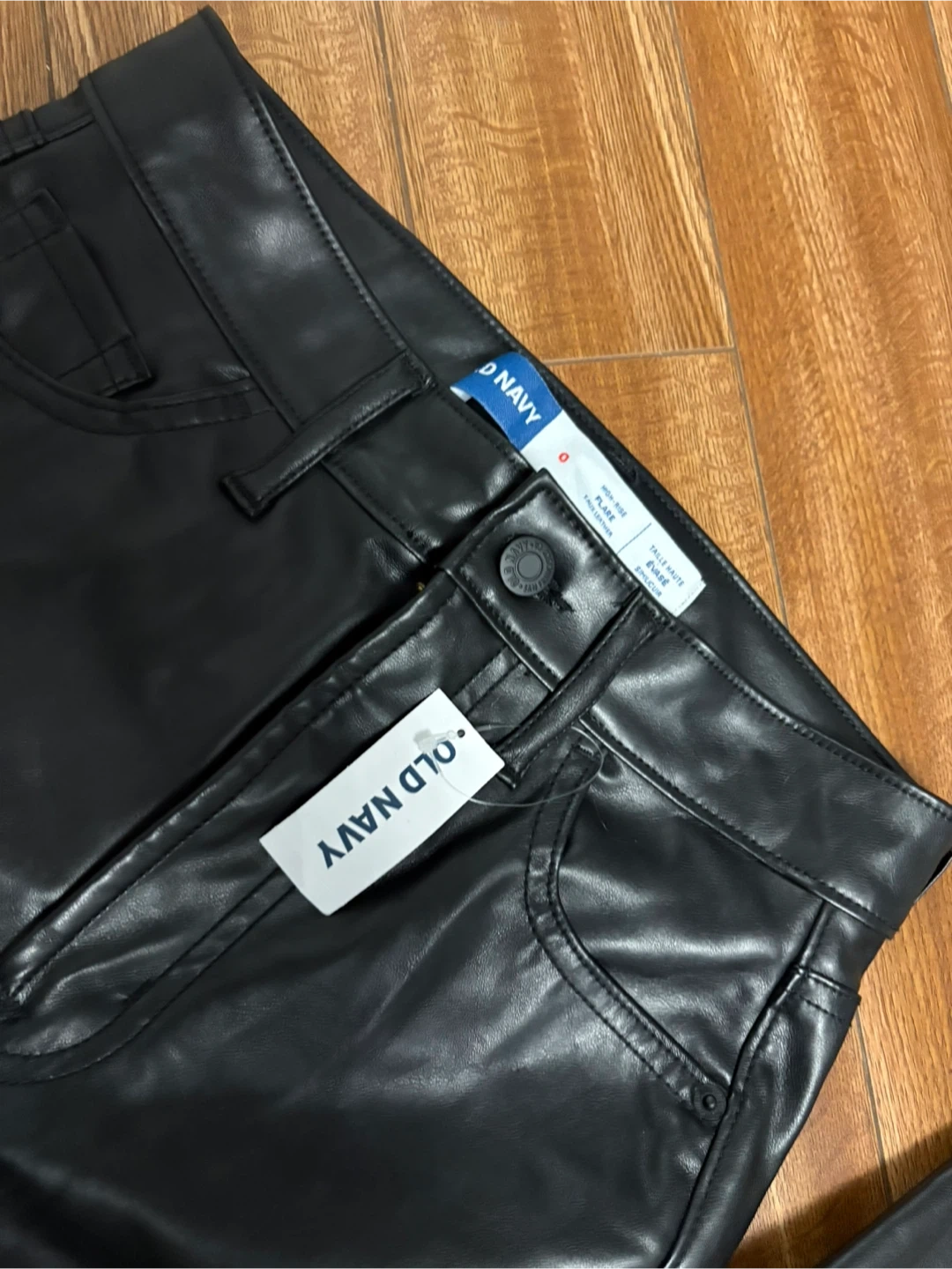 Selling a pair of brand new Old Navy faux leather flare pants with tags still attached! These pants are a stylish addition to any wardrobe, offering a sleek look with a comfortable fit. Perfect for dressing up or down!