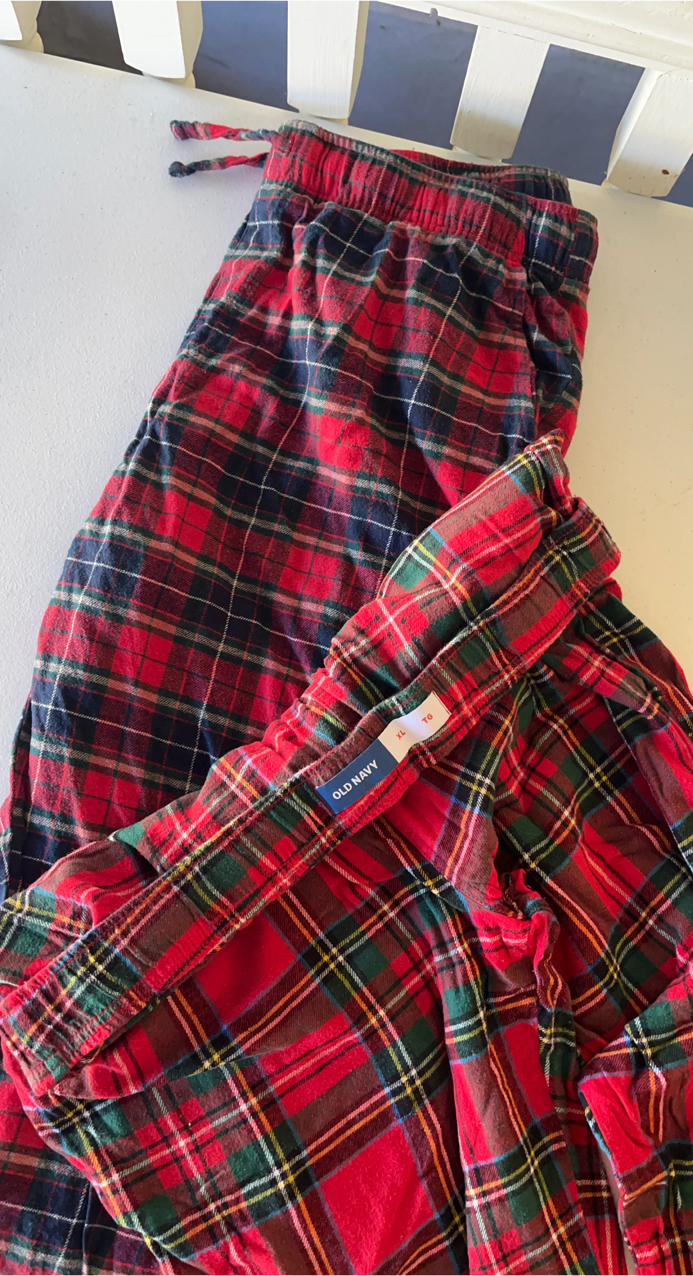 Comfy Old Navy flannel pajama pants in size XL! The classic red and green plaid pattern is perfect for cozy nights in. These have a drawstring waist for a comfortable fit.