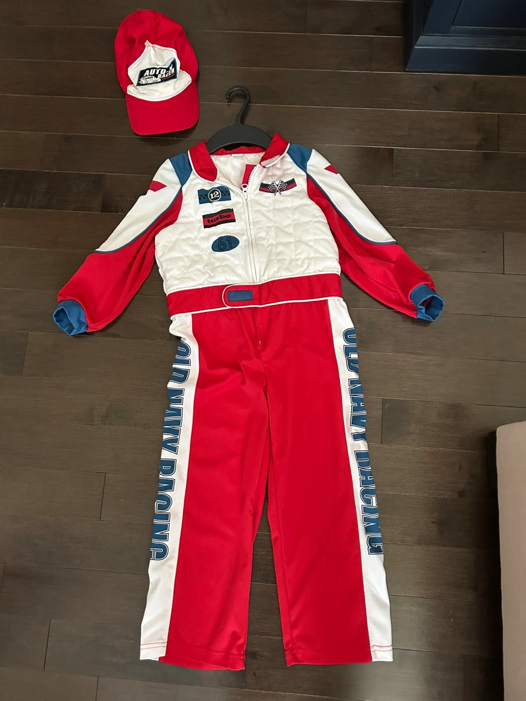 Get your little one ready to race with this Old Navy racing costume! It comes as a one piece and with a matching cap. The costume is in great condition and perfect for dress-up or Halloween. Size is 5/6