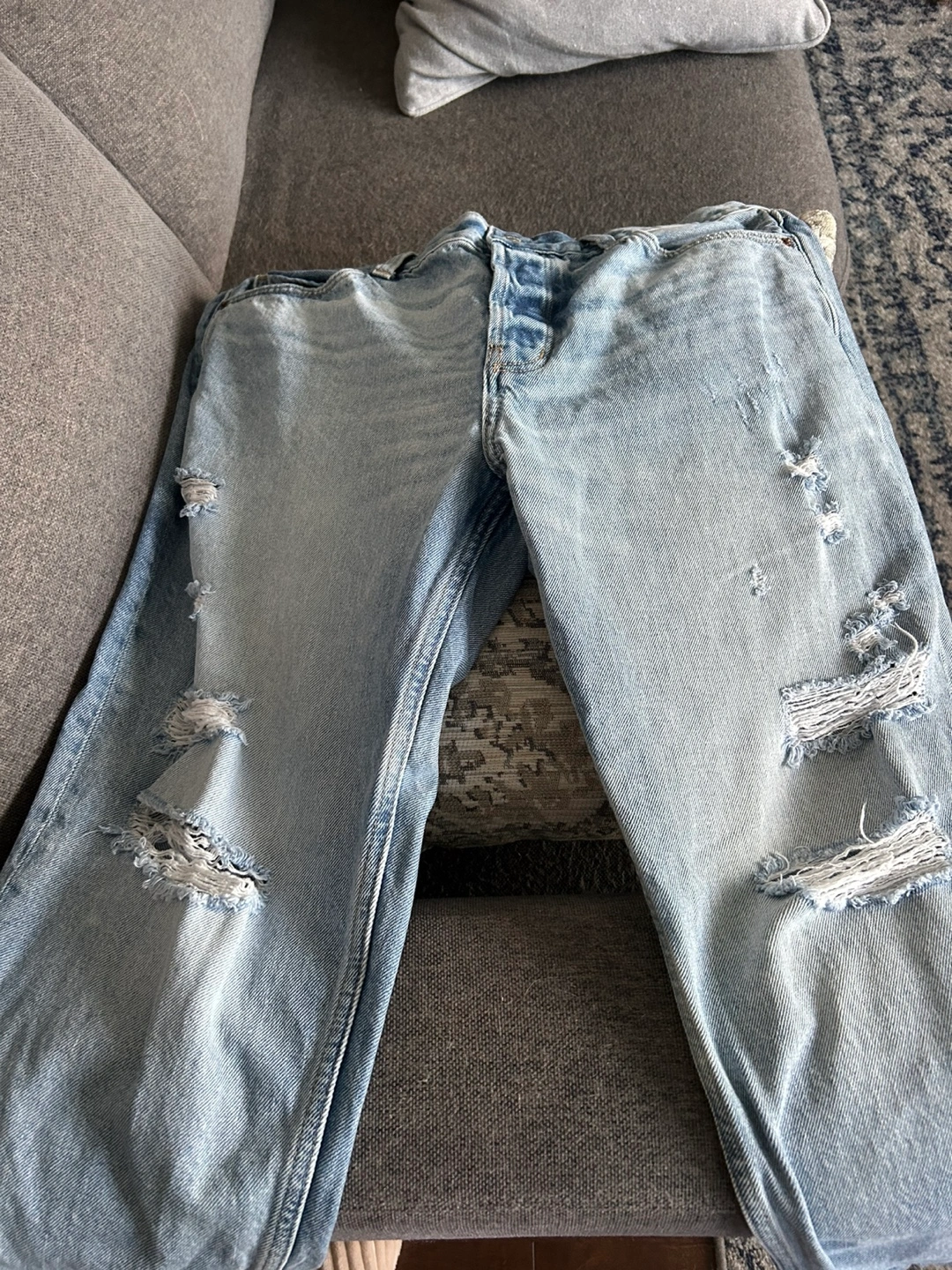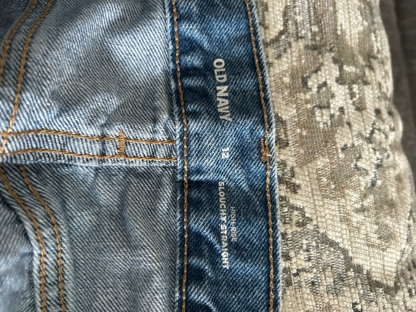 Selling a pair of Old Navy slouchy straight jeans in size 12. They're in great condition and ready for a new home! The light-wash denim has a cool, relaxed vibe, perfect for everyday wear