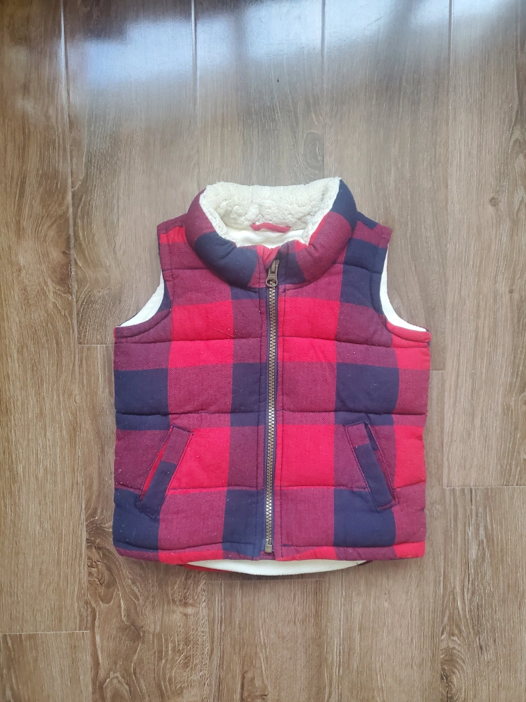 Old Navy Toddler Vest Size 18-24 Months Adorable toddler boys vest. Buffalo plaid. Sherpa lining. Zipper closure. Size 18-24 months. From a Pet and Smoke Free Home.