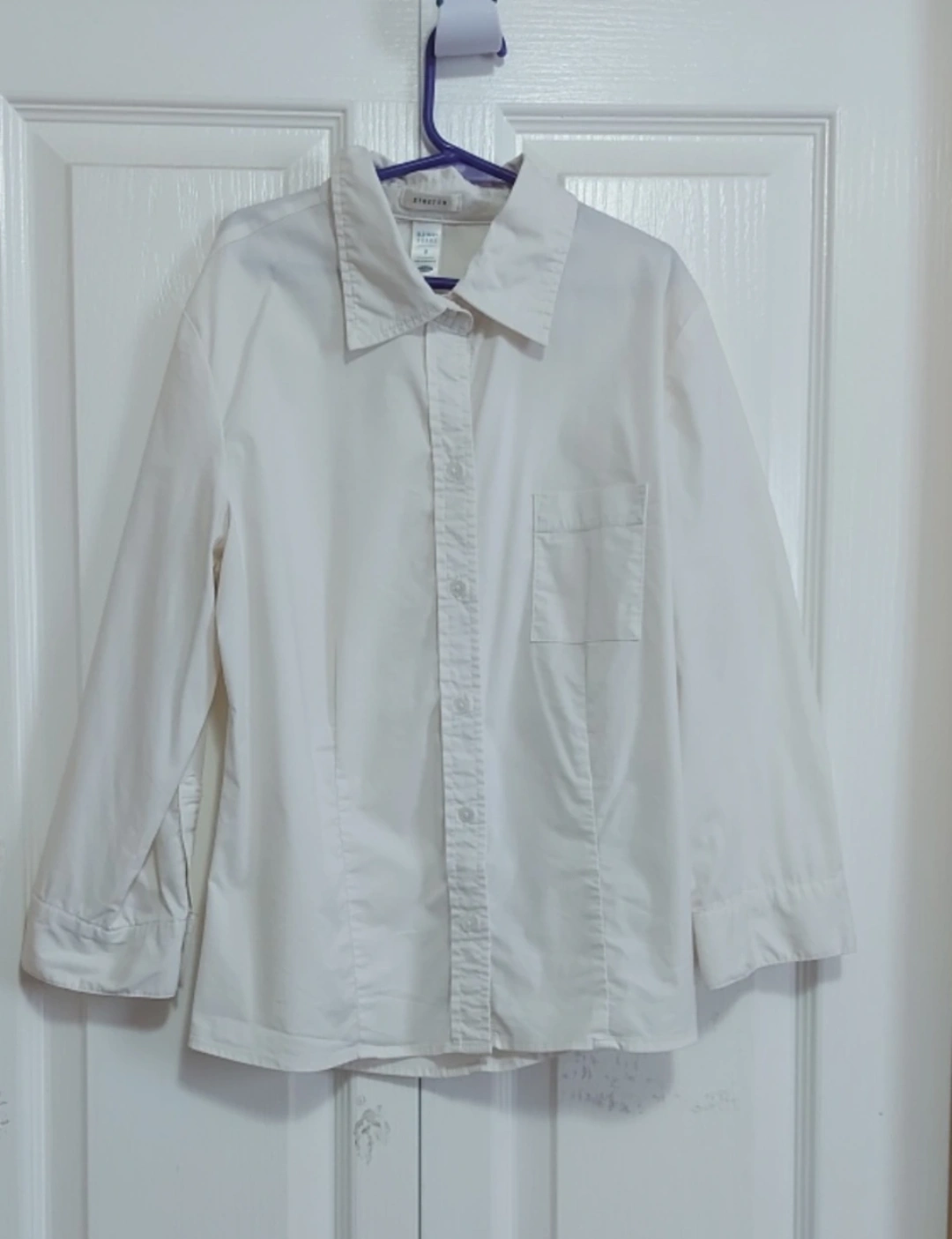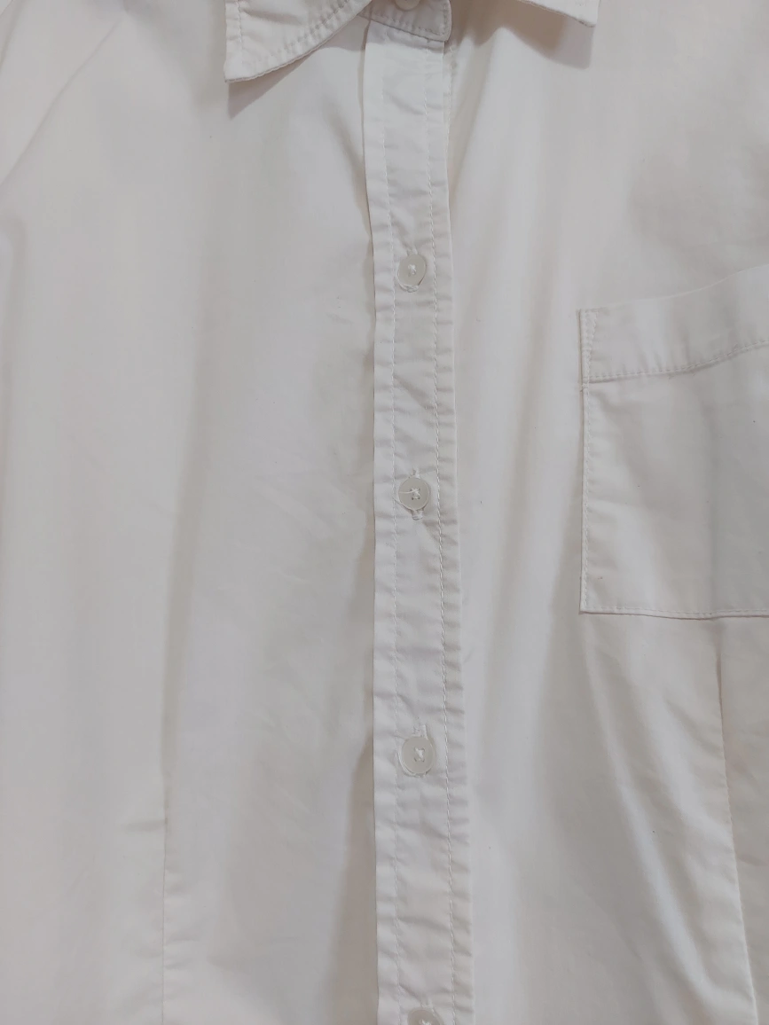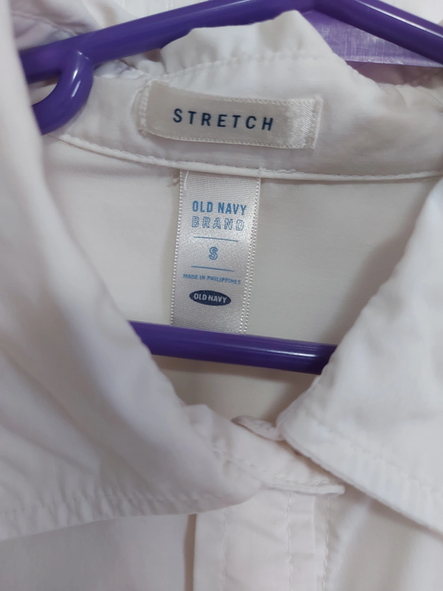 free delivery within 7km! white button-up shirt from old navy. small size, with a bit of stretch in it. good for layering or wearing it on its own. length: 57cm width (underarm to underarm): 34cm