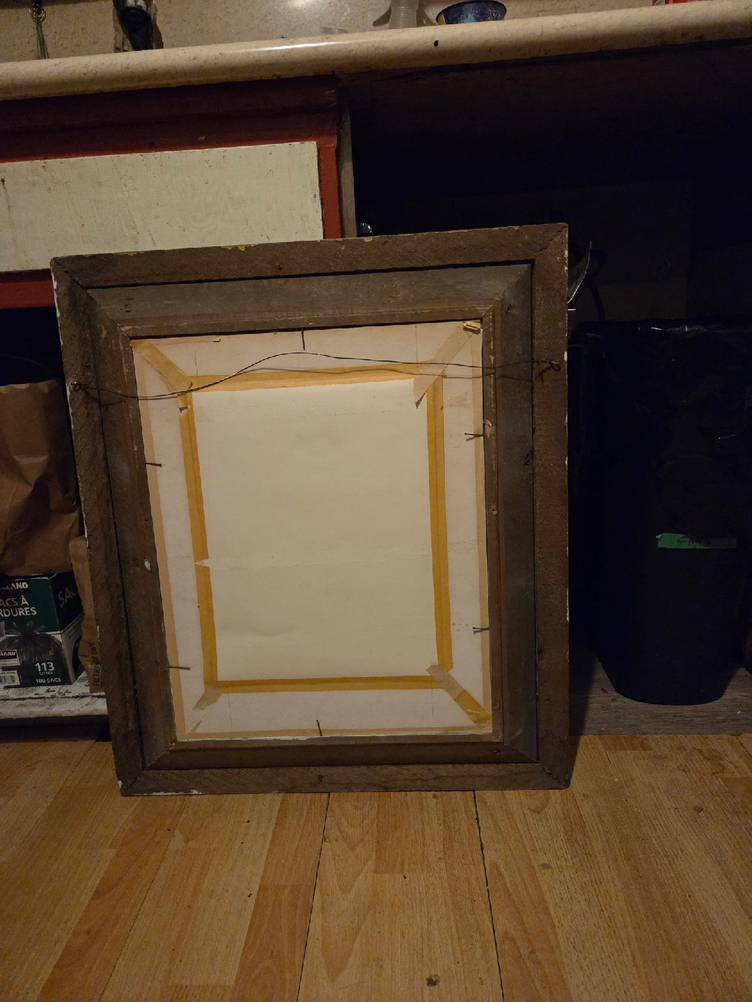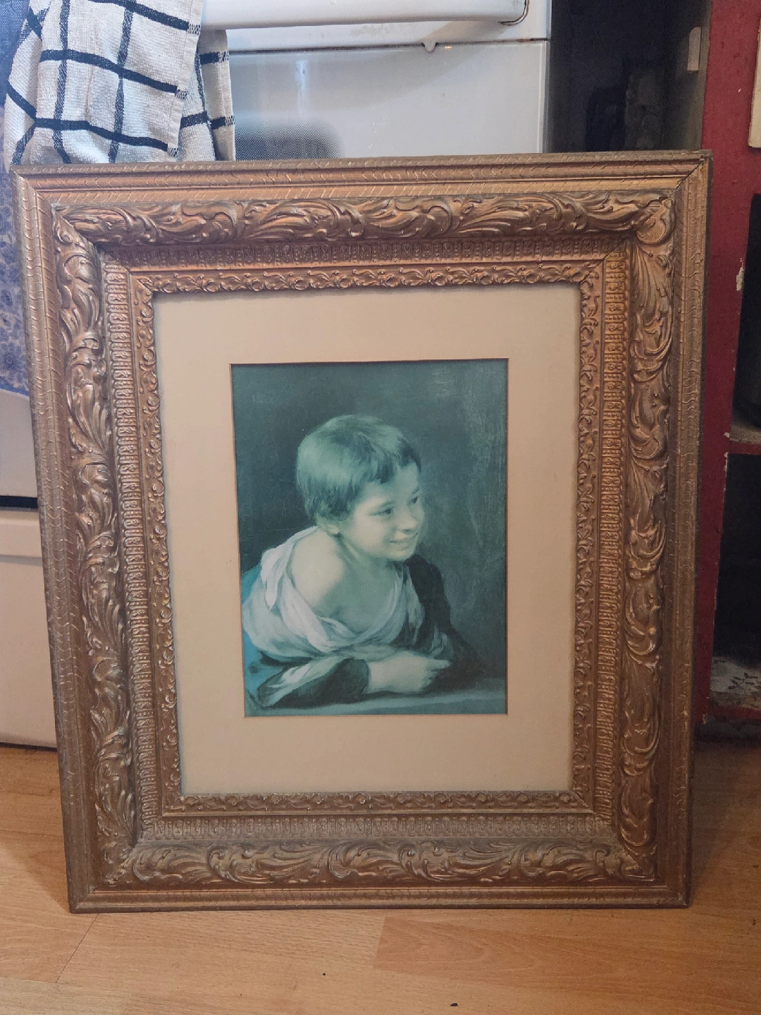 I don't have a lot of info about it, was from my late grandma's house beautiful wood frame The whole thing seems to be roughly 28x24 inches, just the picture in the middle is 14x10ish