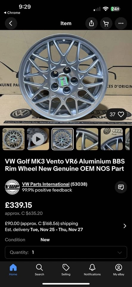 1996 VW Jetta VR6 OEM 15” x 6.5” width. ET 43, BBS rims, 5x100 bolt pattern. vw p/n# 1H0601025AA, $500 for all 4, tires no good. Pick up in Acton, 15km north of Milton. 4one6899-2665