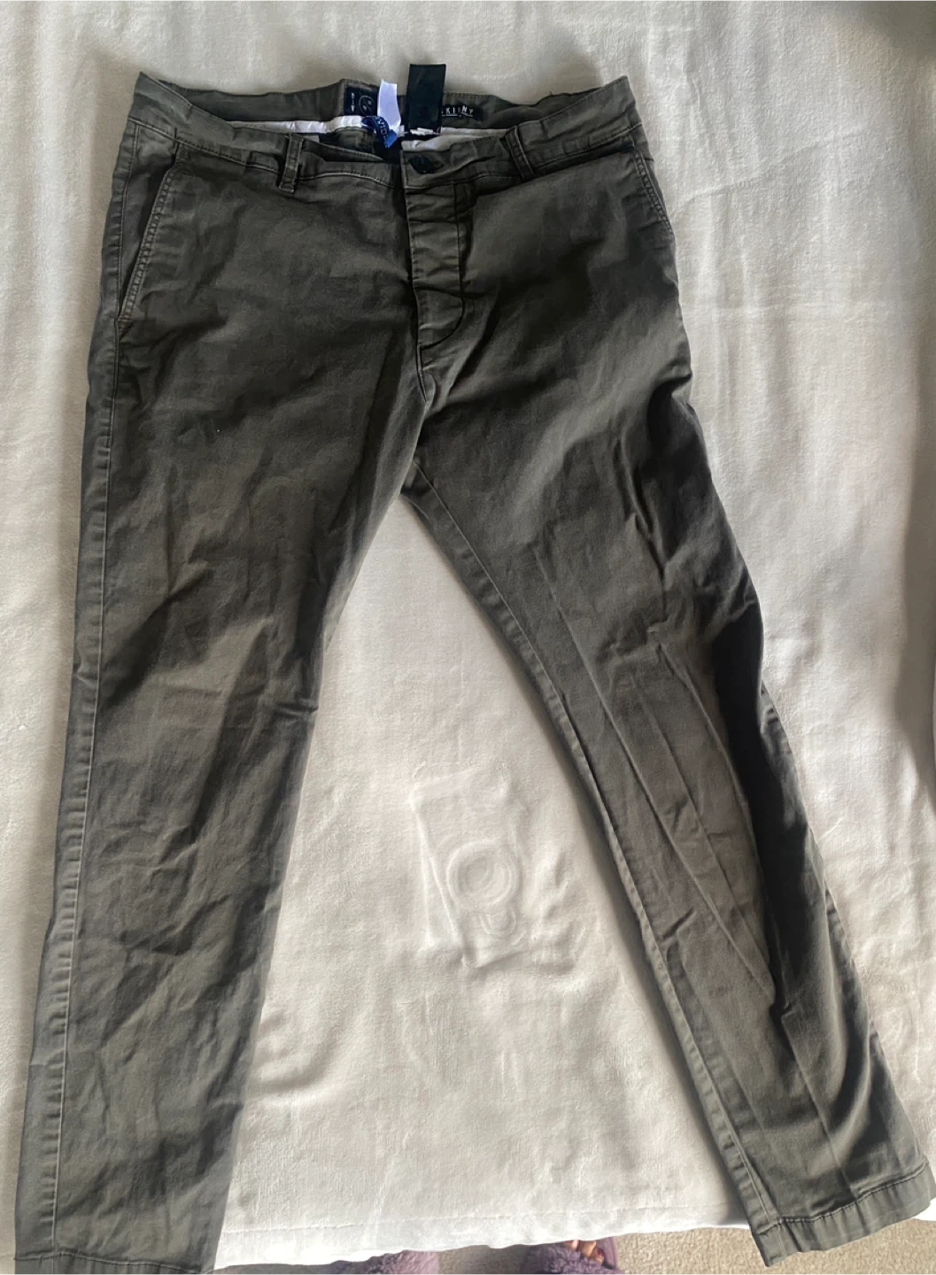 Selling a pair of Divided skinny pants in olive green. They are a size 34. Great for everyday wear!
