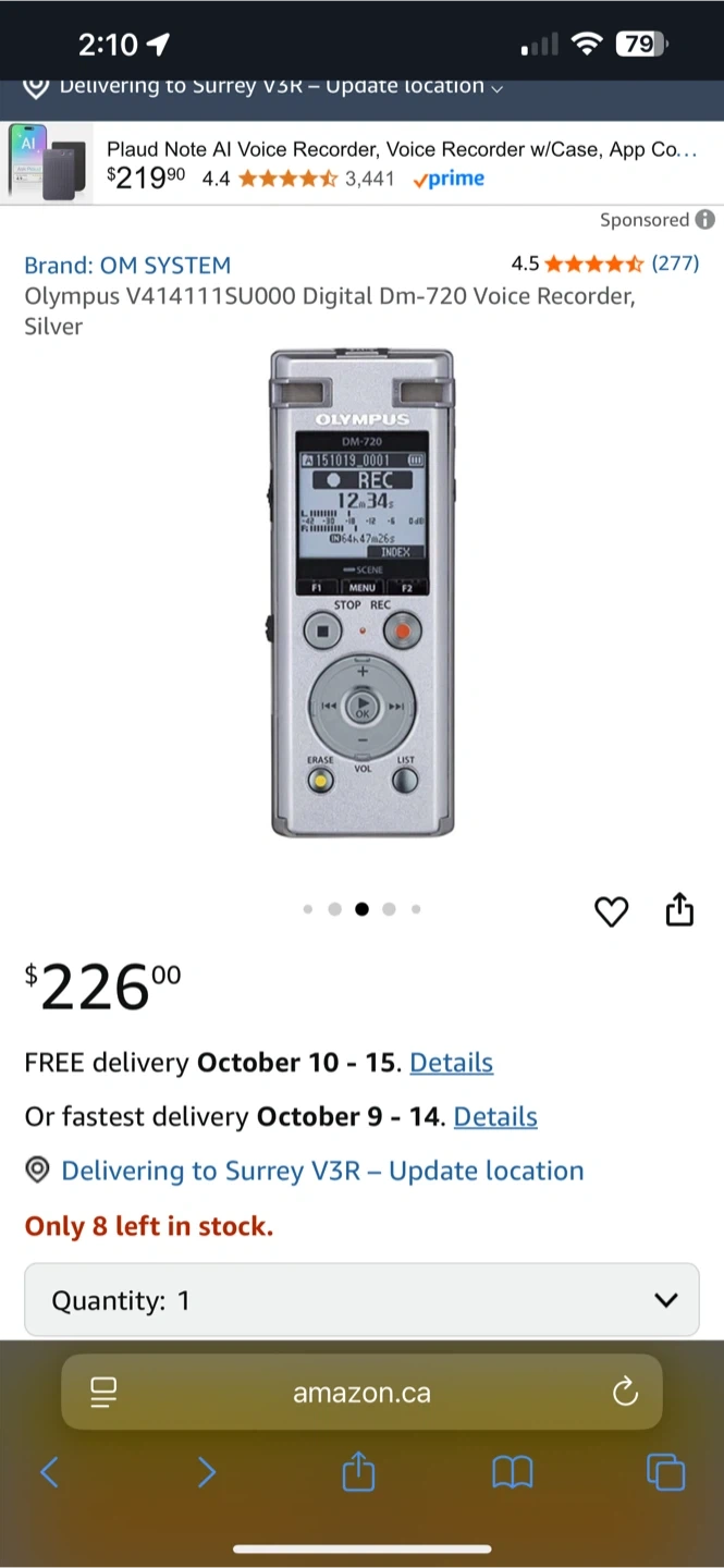 Selling an Olympus DM-720 digital voice recorder. It's in good working condition and ready to use for recordings. Perfect for students, journalists, or anyone needing a reliable voice recorder! I used it for my classes and it worked great! A new one on Amazon is around $226