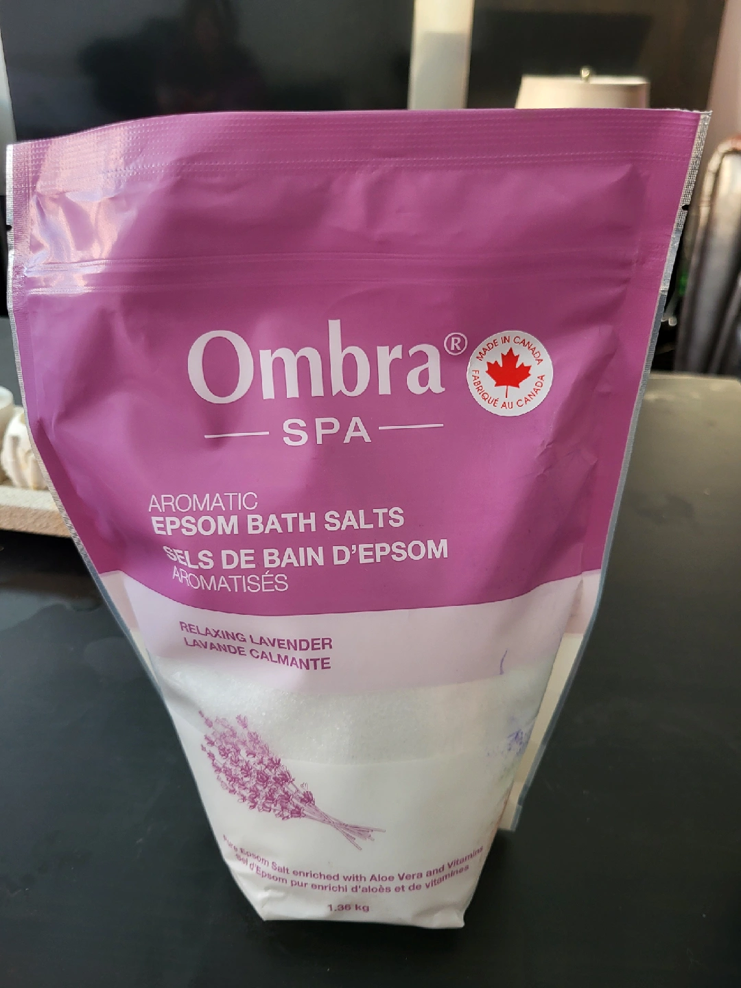 Relax and unwind with Ombra Spa Aromatic Epsom Bath Salts! These bath salts are infused with relaxing lavender to help soothe your mind and body. They're enriched with Aloe Vera and Vitamin B5 for extra skin nourishment. Perfect for a calming bath after a long day! 1.36 kg
