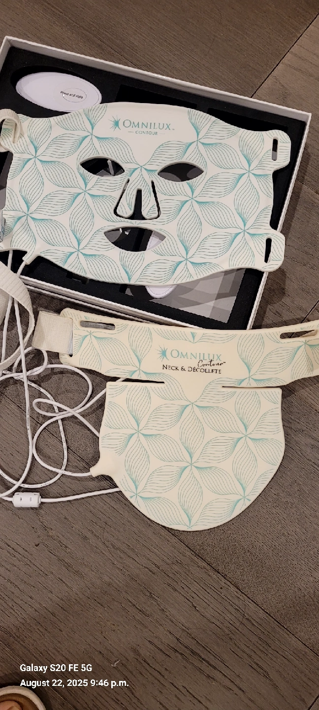 I'm selling an Omnilux Contour Face and Neck & Decollete LED mask. It comes with the box and all included components. This mask is designed to help rejuvenate your skin using LED light therapy. It's in great condition and ready for a new home!
