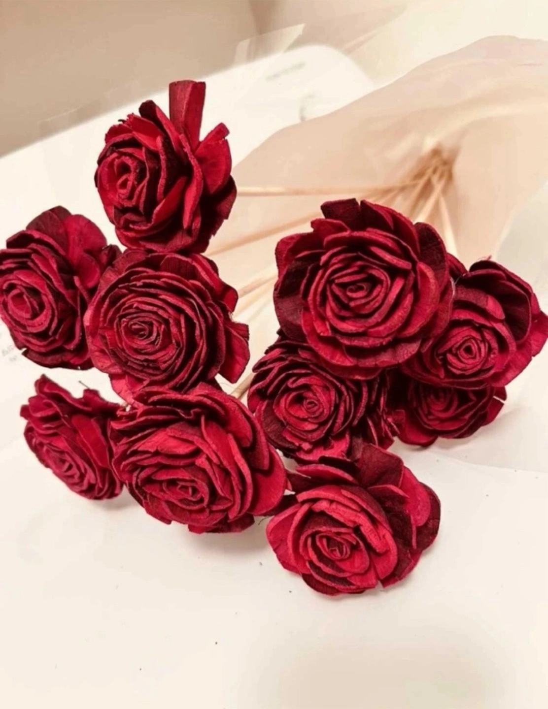 The roses are cleverly made of wood, and are about 20 inches long. Consider using them to brighten up any room. Never need watering 🥳