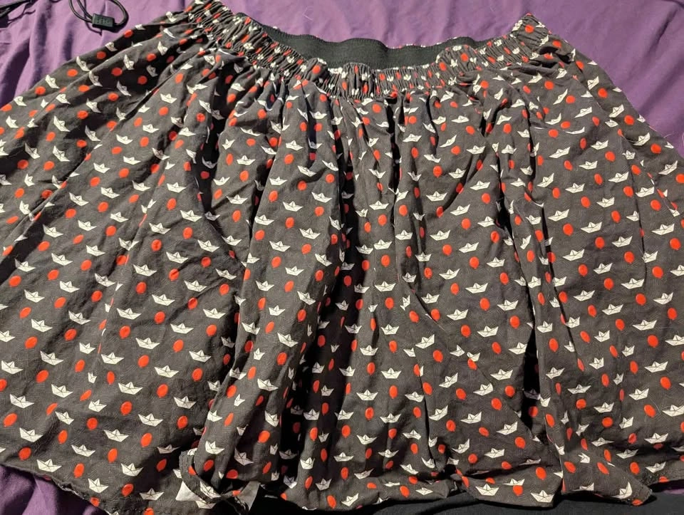 Custom made one of a kind Pennywise/IT horror pin-up style skirt, Georgie's paper boat and classic red balloon pattern, elastic waist fits about a 1X to 3X