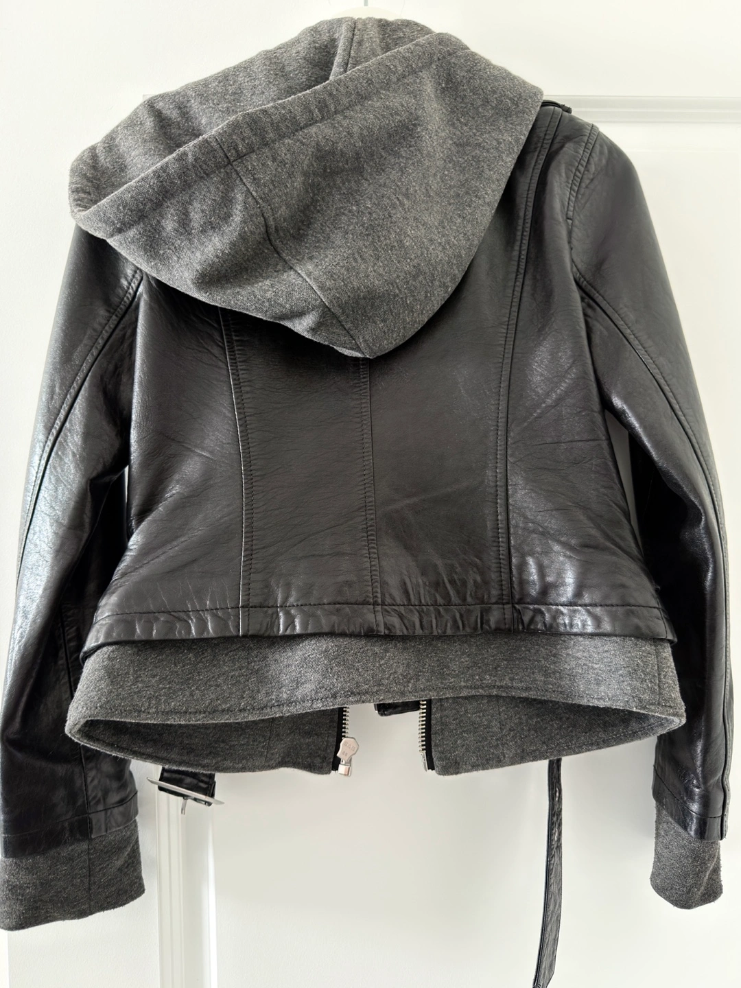 Selling a unique design black leather jacket transformer! The hood is detachable (scroll for more pics) Size: S Condition: like new Perfect for adding a bit of edge to your wardrobe