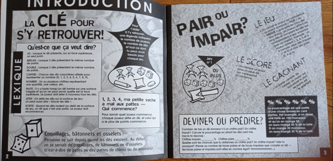 Selling a copy of Opérations des Jeux de Maths. Great for learning math skills in a fun way! Includes many different games to play with dice and other simple materials