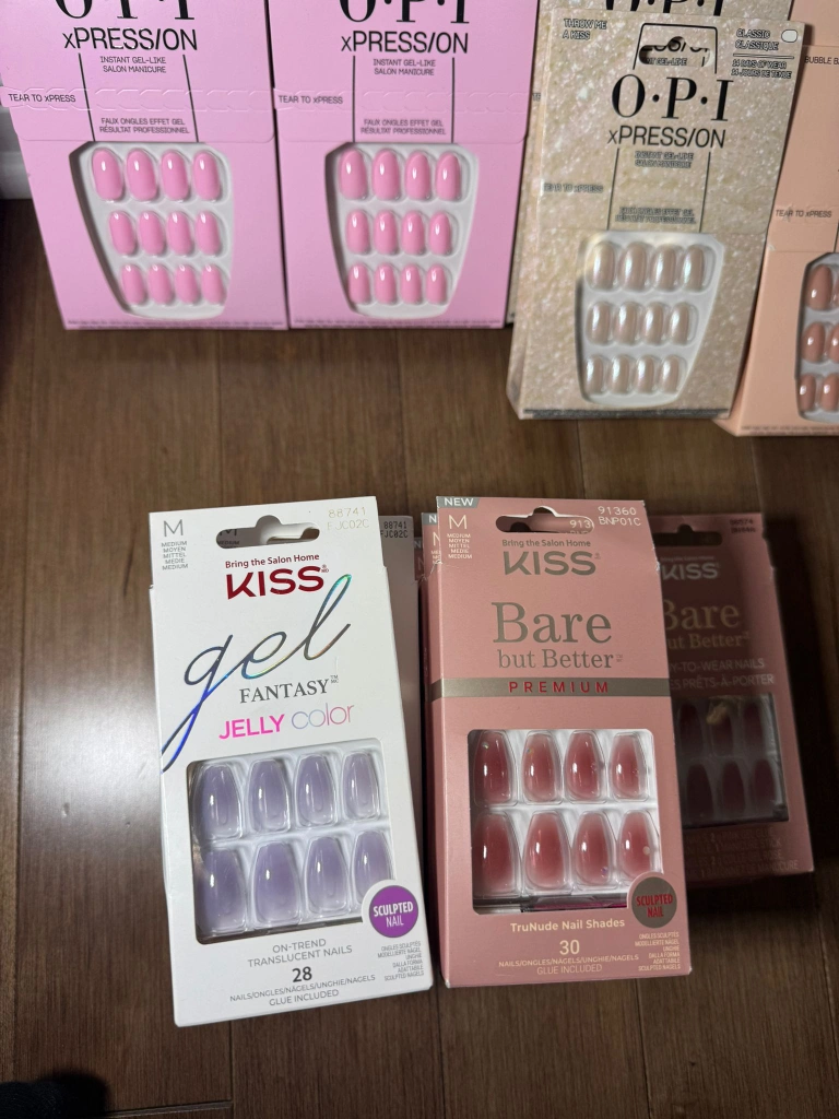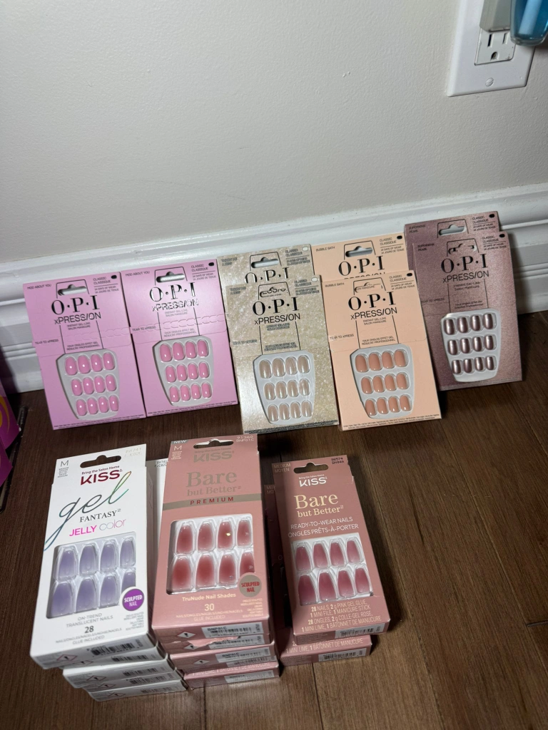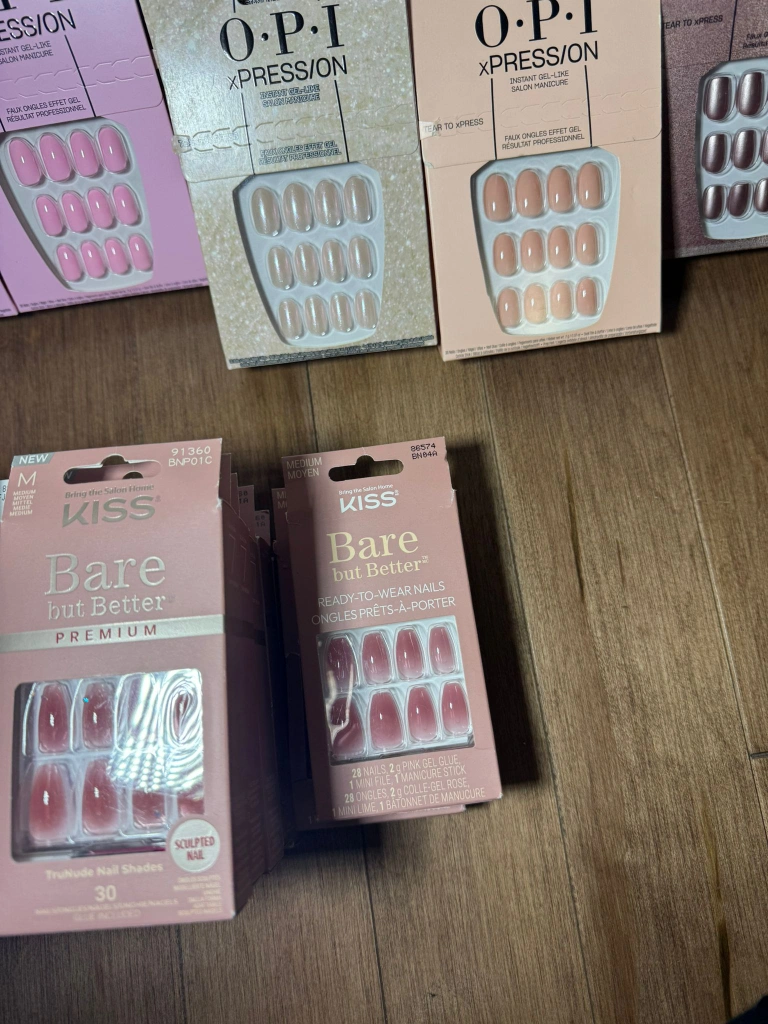 I'm offering a selection of OPI Xpress/On and Kiss Bare but Better Premium press-on nails, all brand new in their original boxes. These are perfect for achieving a salon-quality manicure at home in minutes! Available in various shades and styles. I'm asking 8 dollars each or 3 for 20. Pick up in Orleans.