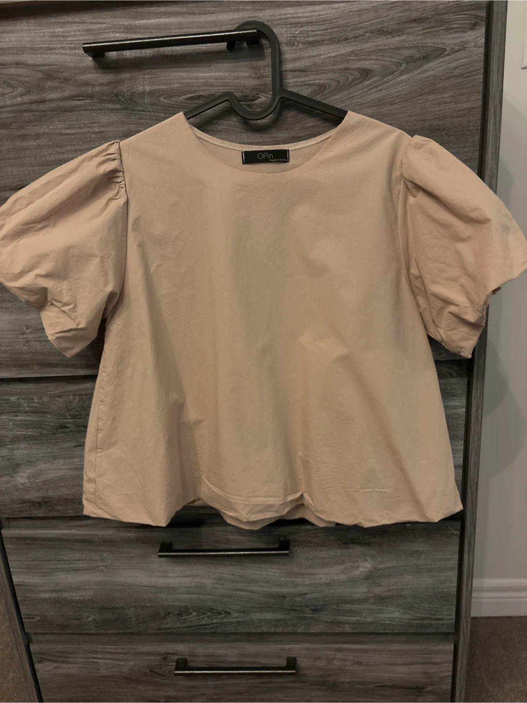 A cute beige blouse from OPin, made in Korea! It's in great condition The fabric is soft
